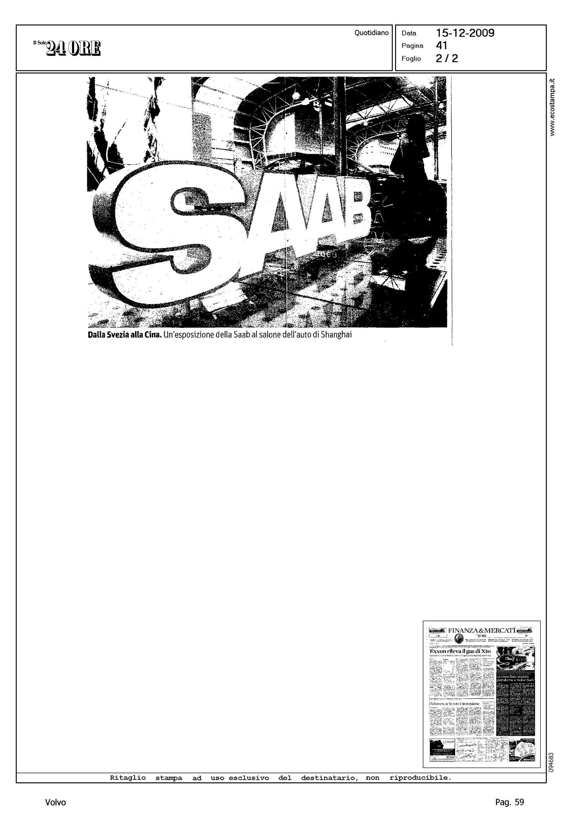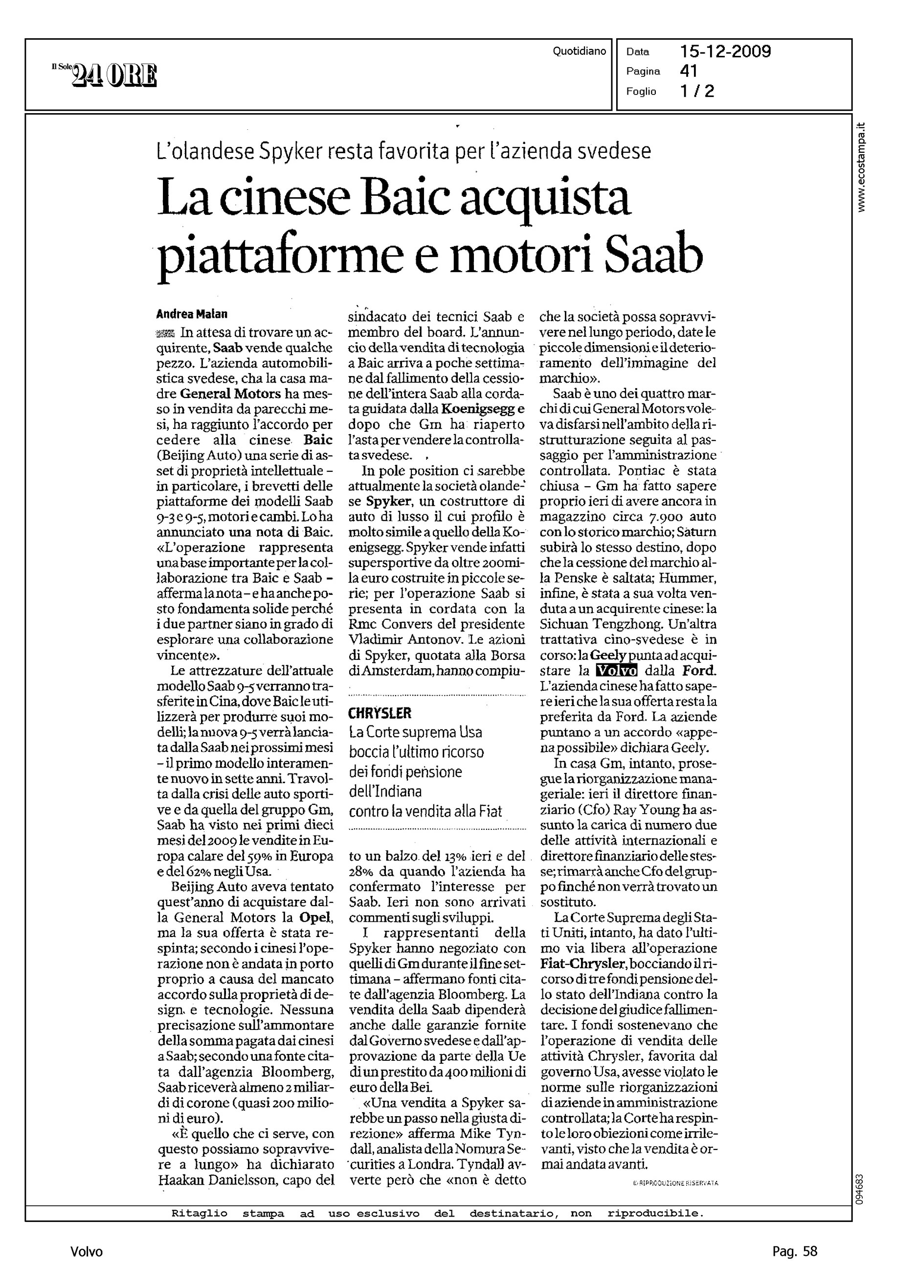 Author: MALAN, ANDREALine: Corporate Model: Corporate Subject: - Title: LA CINESE BAIC ACQUISTA PIATTAFORME E MOTORI SAABHighlight: CITAZIONE TRATTATIVA