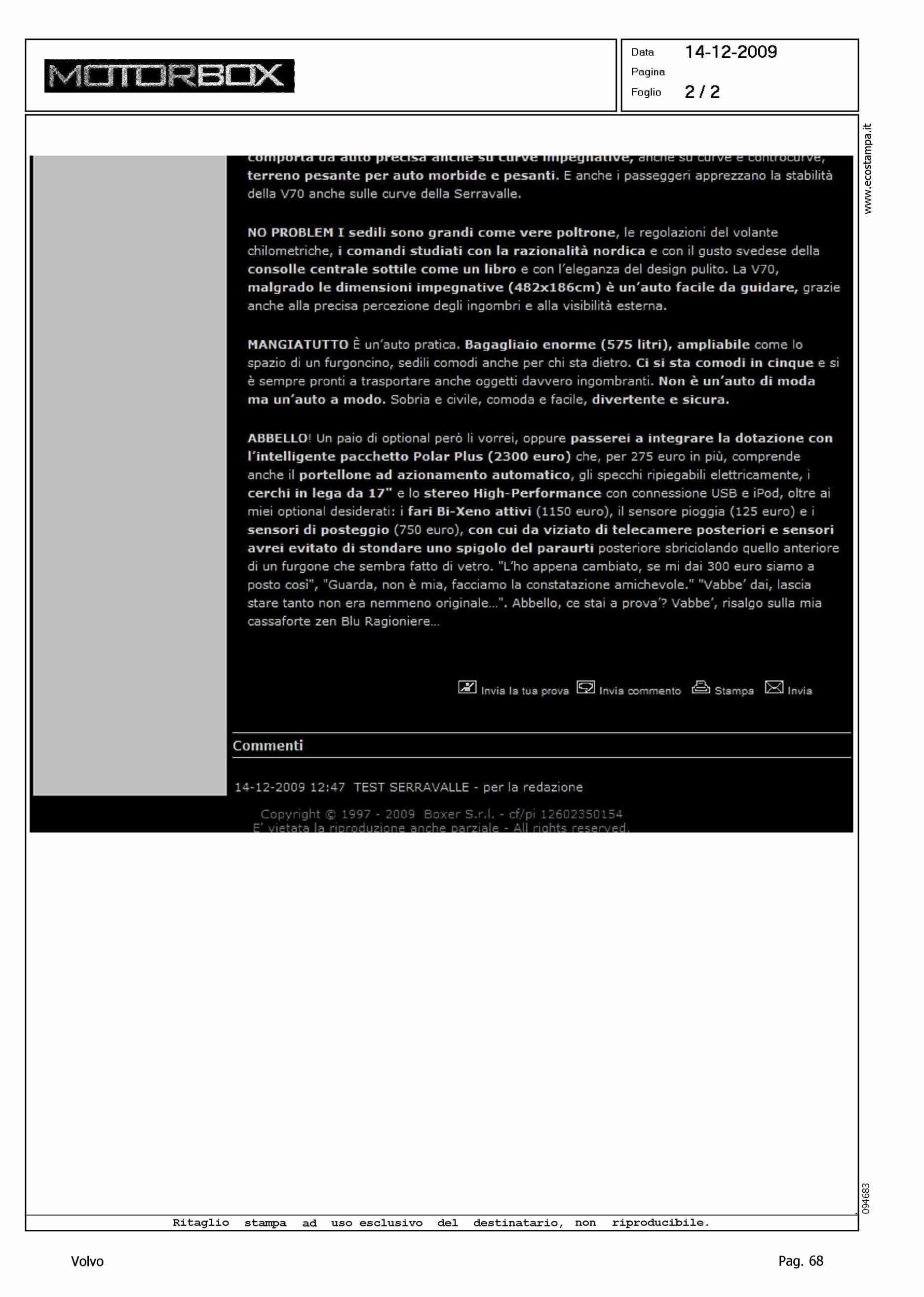 Line: Corporate Model: Volvo V70 Subject: -