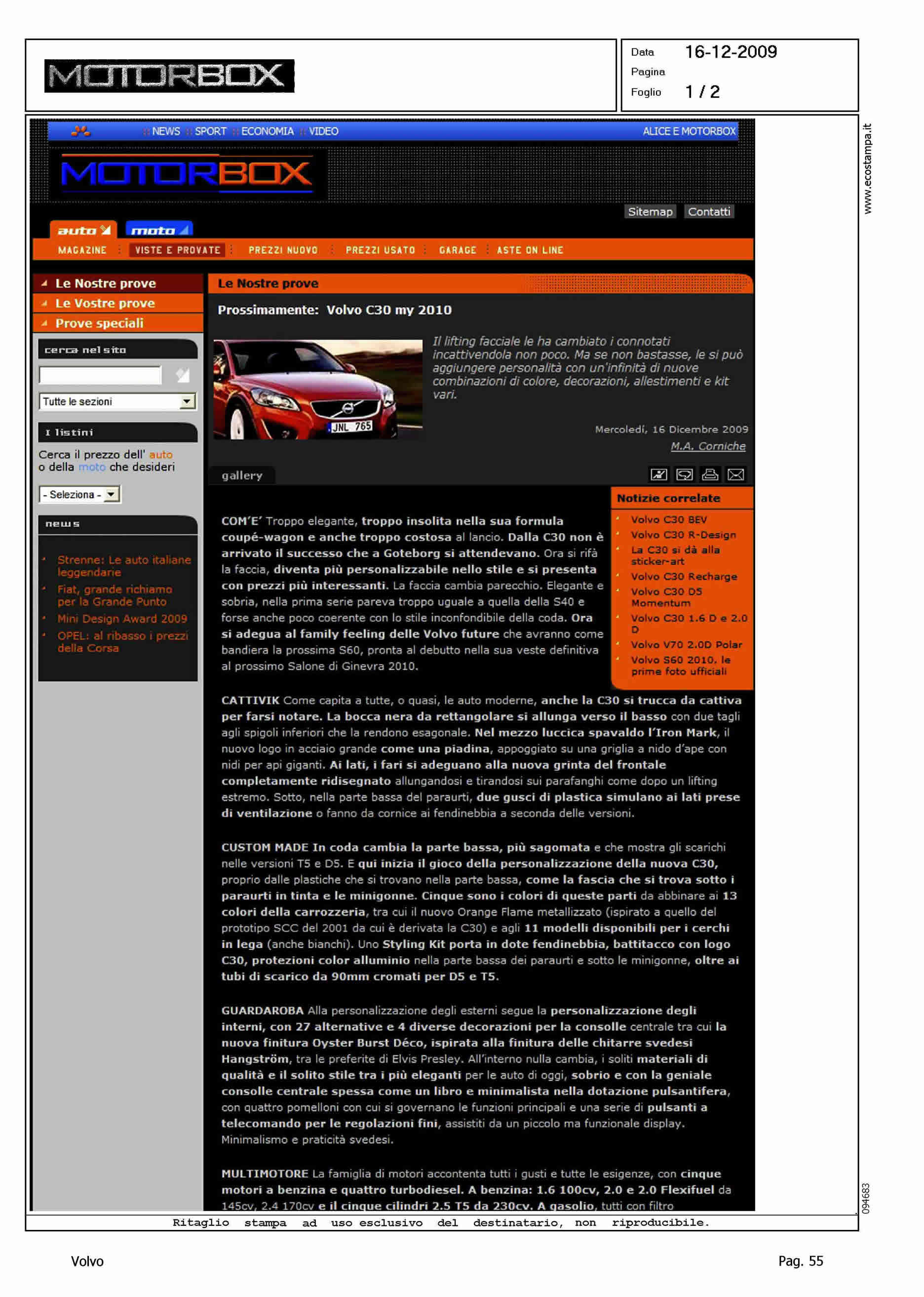 Title: LE NOSTRE PROVE - PROSSIMAMENTE: VOLVO C30 MY 2010