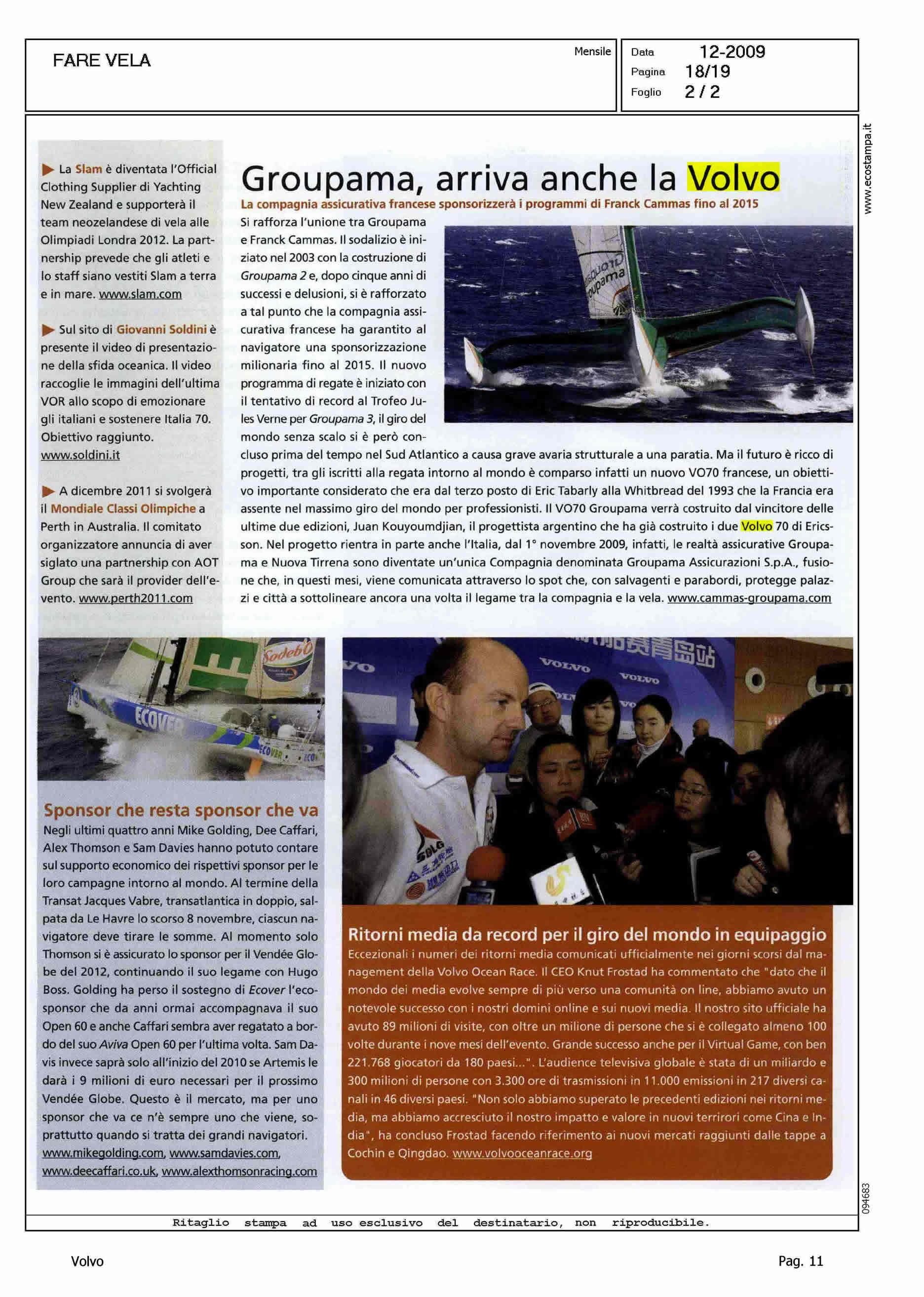 Author: Line: Corporate Model: Corporate Subject: Volvo Ocean Race Title: GROUPAMA - ARRIVA ANCHE LA VOLVOHighlight: SPONSORIZZAZIONE BARCHE FRANCESI ALLA VOR