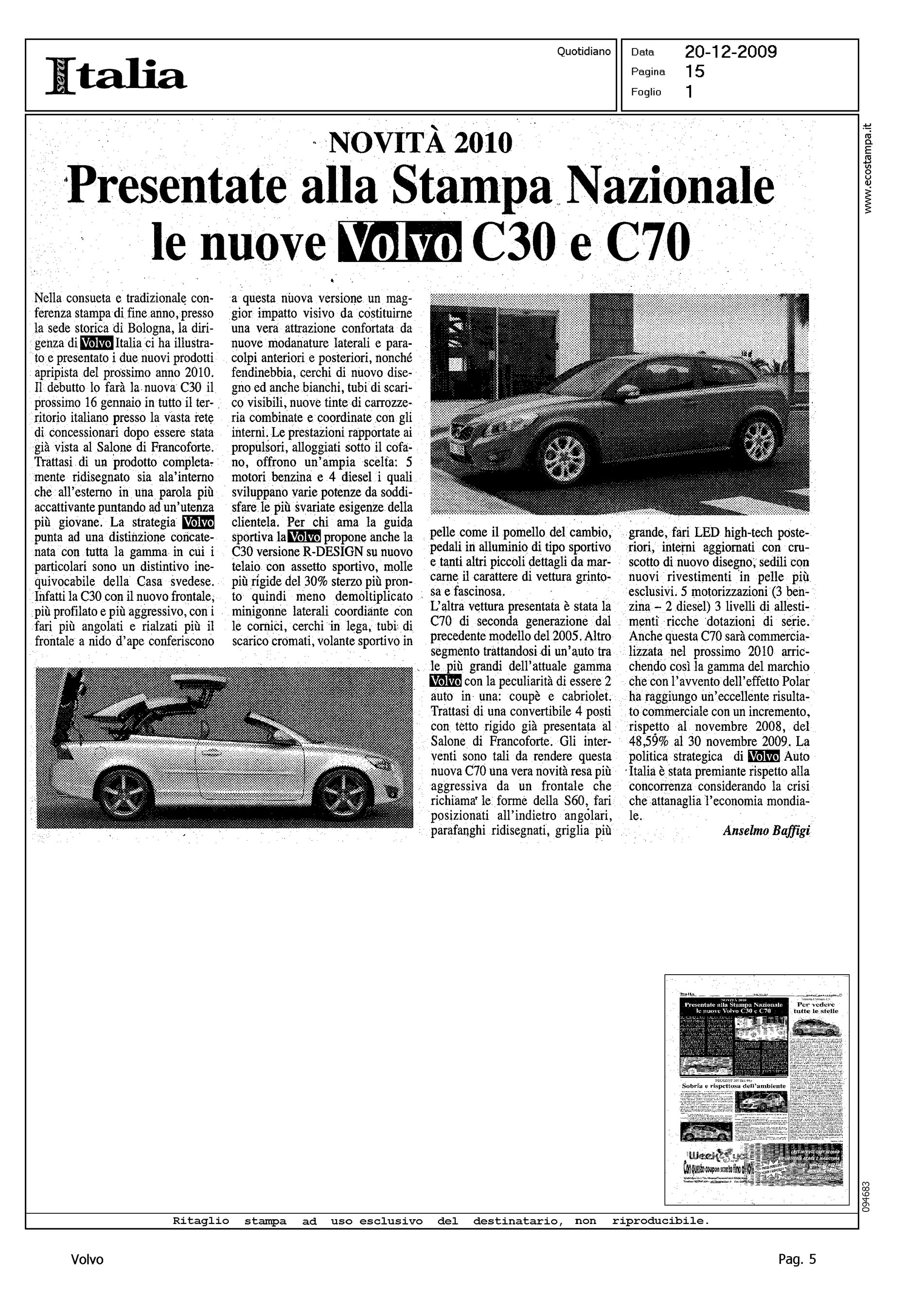 Title: NOVITA' 2010 - PRESENTATE ALLA STAMPA NAZIONALE LE VOLVO C30 E C70
