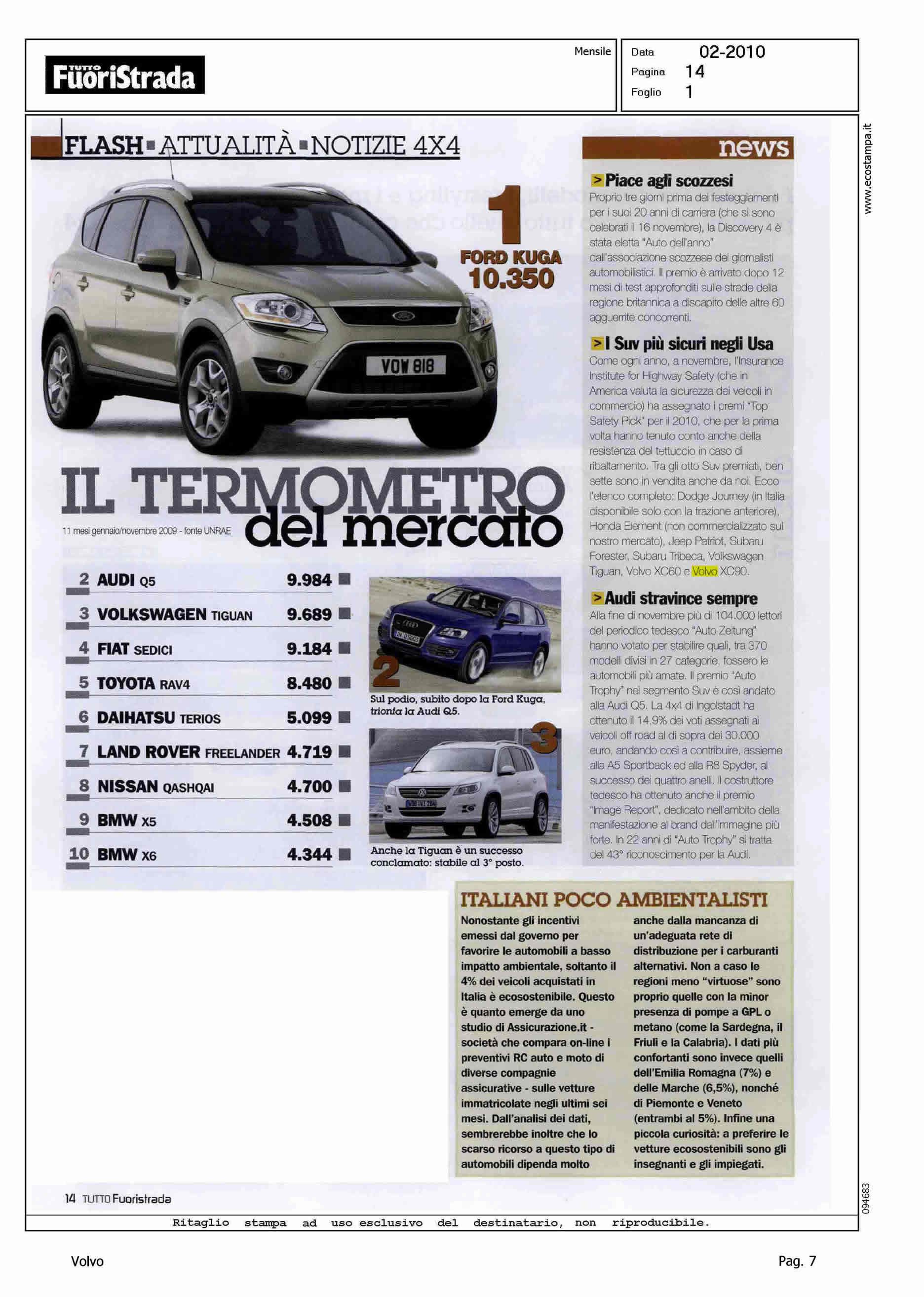 Author: Line: XC60 Model: Subject: - Title: I SUV PIU' SICURI NEGLI USAHighlight: XC60 PREMIO USA TOP SAFETY PICK 2010