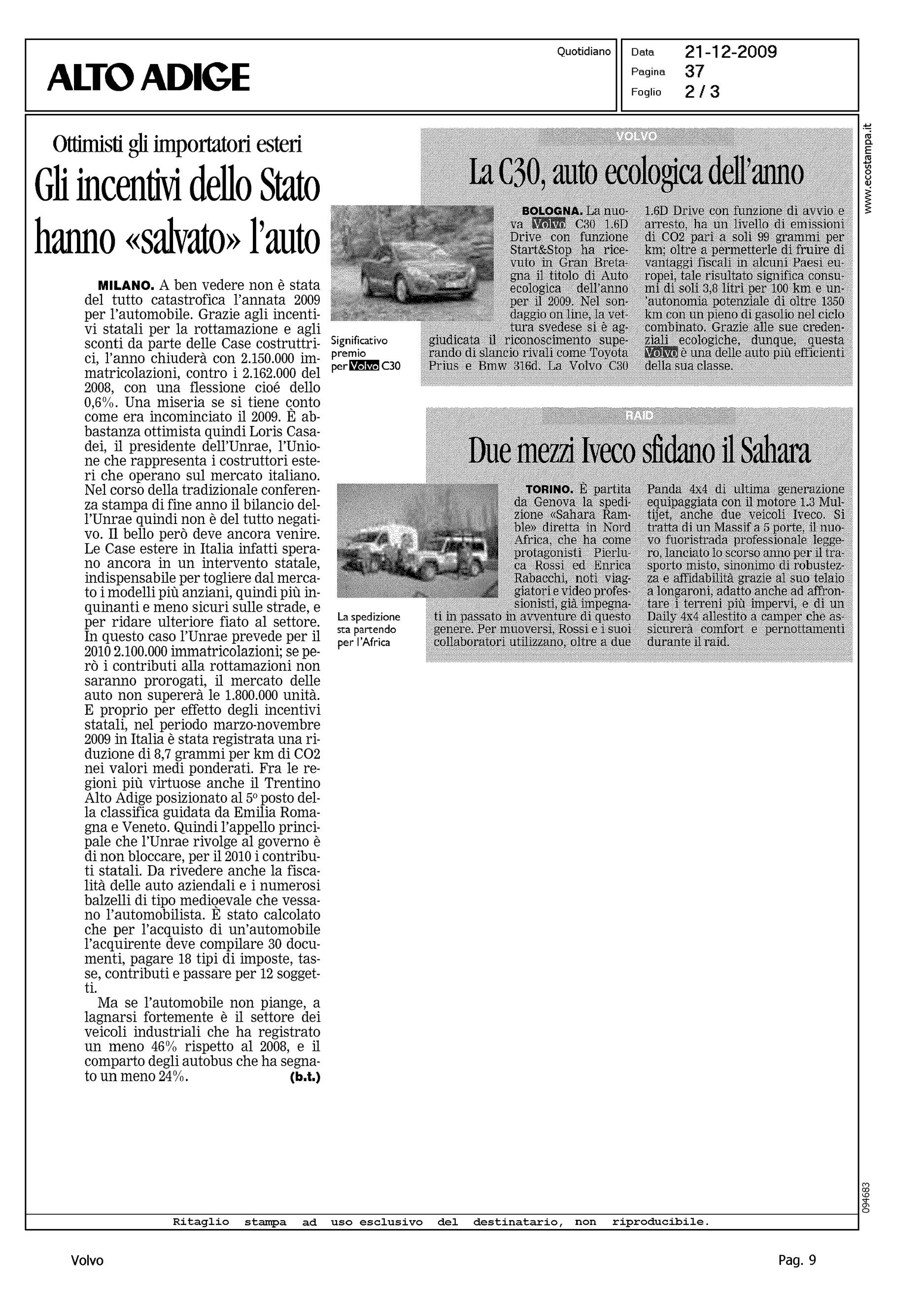 Author: Line: Corporate Model: Volvo C30 Subject: - Title: LA C30, AUTO ECOLOGICA DELL'ANNOHighlight: AUTO ECOLOGICA DELL'ANNO (GB) - T. PRIUS - BMW 116d - EMISSIONI - CONSUMI