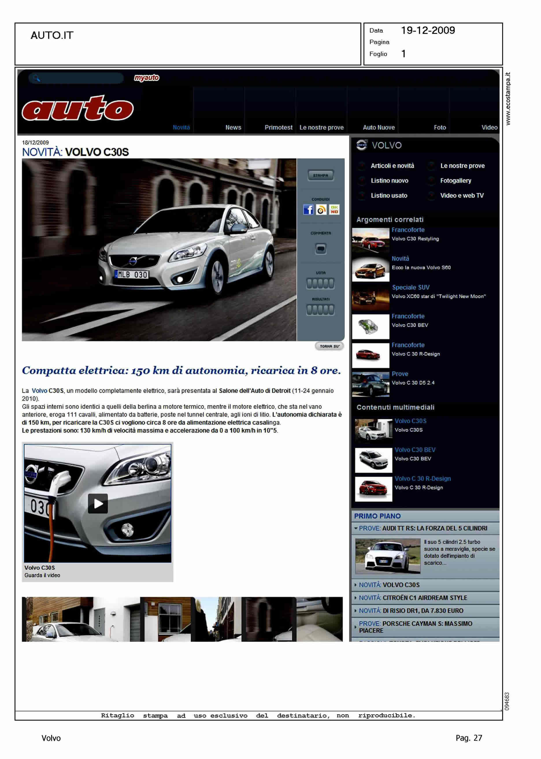 Author: Line: Corporate Model: Volvo C30 Subject: - Title: NOVITA': VOLVO C30SHighlight: SALONE DI DETROIT - MOTORE - POTENZA - AUTONOMIA - PRESTAZIONI