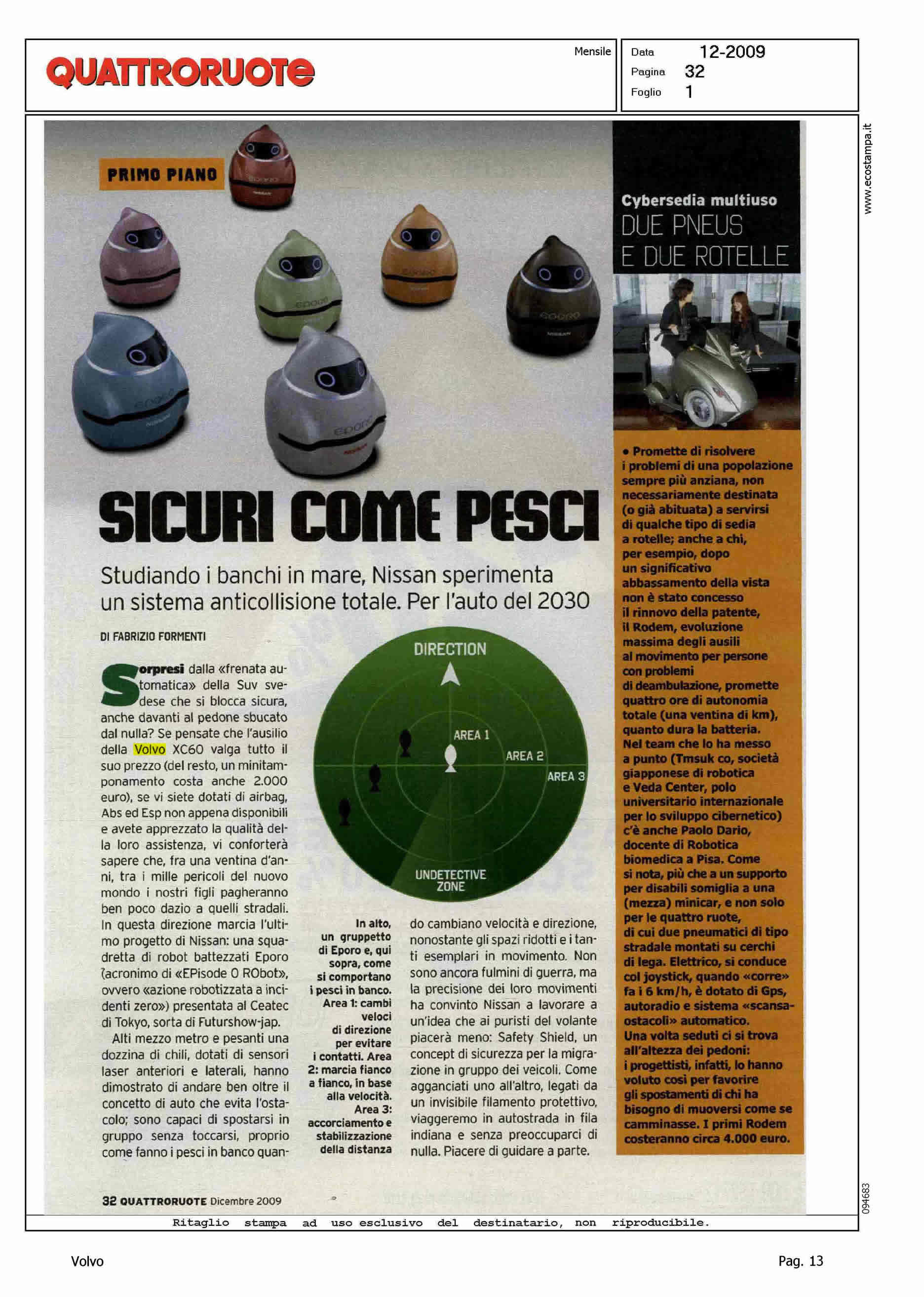 Author: FORMENTI, FABRIZIOLine: XC60 Model: Subject: - Title: SICURI COME PESCIHighlight: SICUREZZA. (Nel testo) ... Se pensate che l'ausilio della Volvo XC60 valga tutto il suo prezzo...