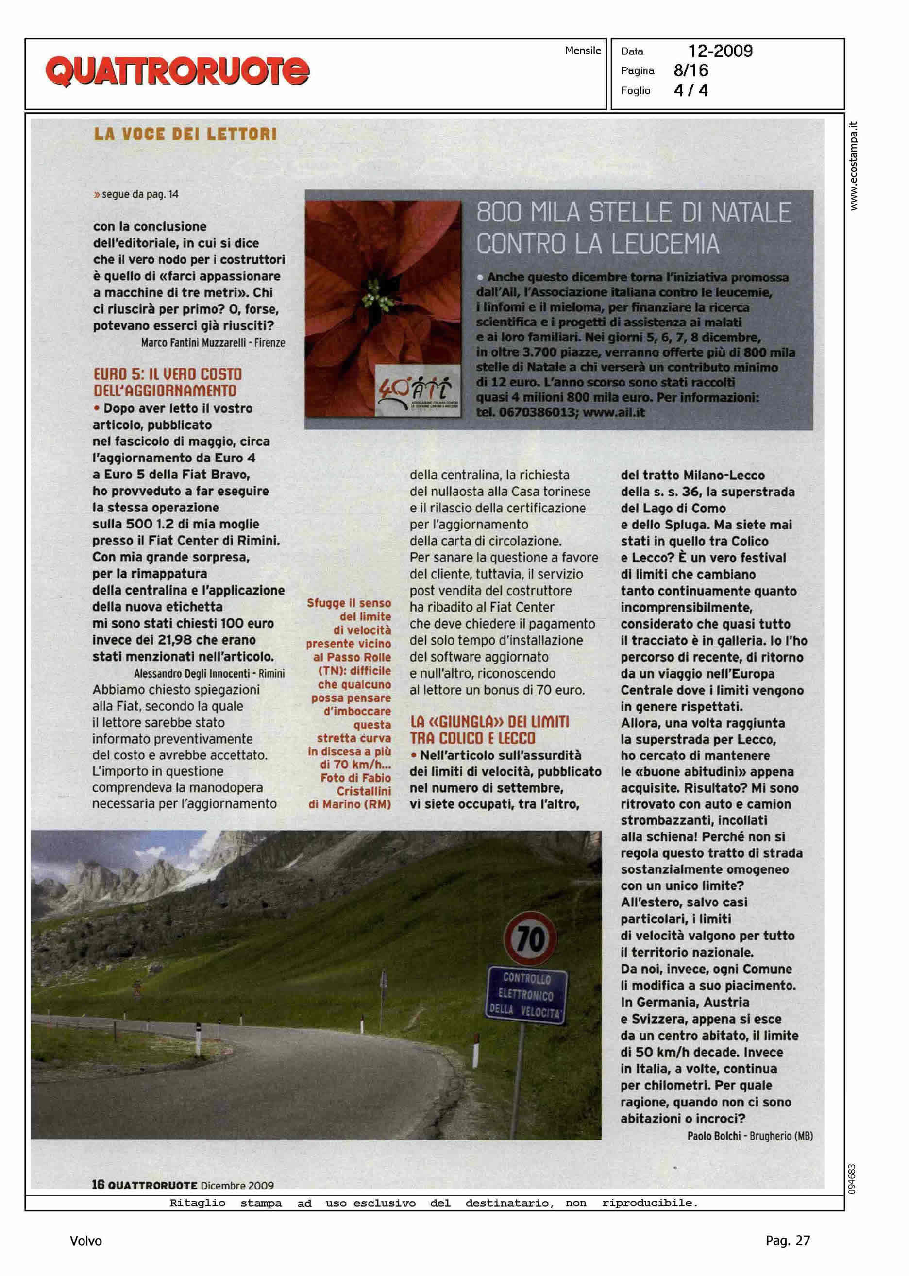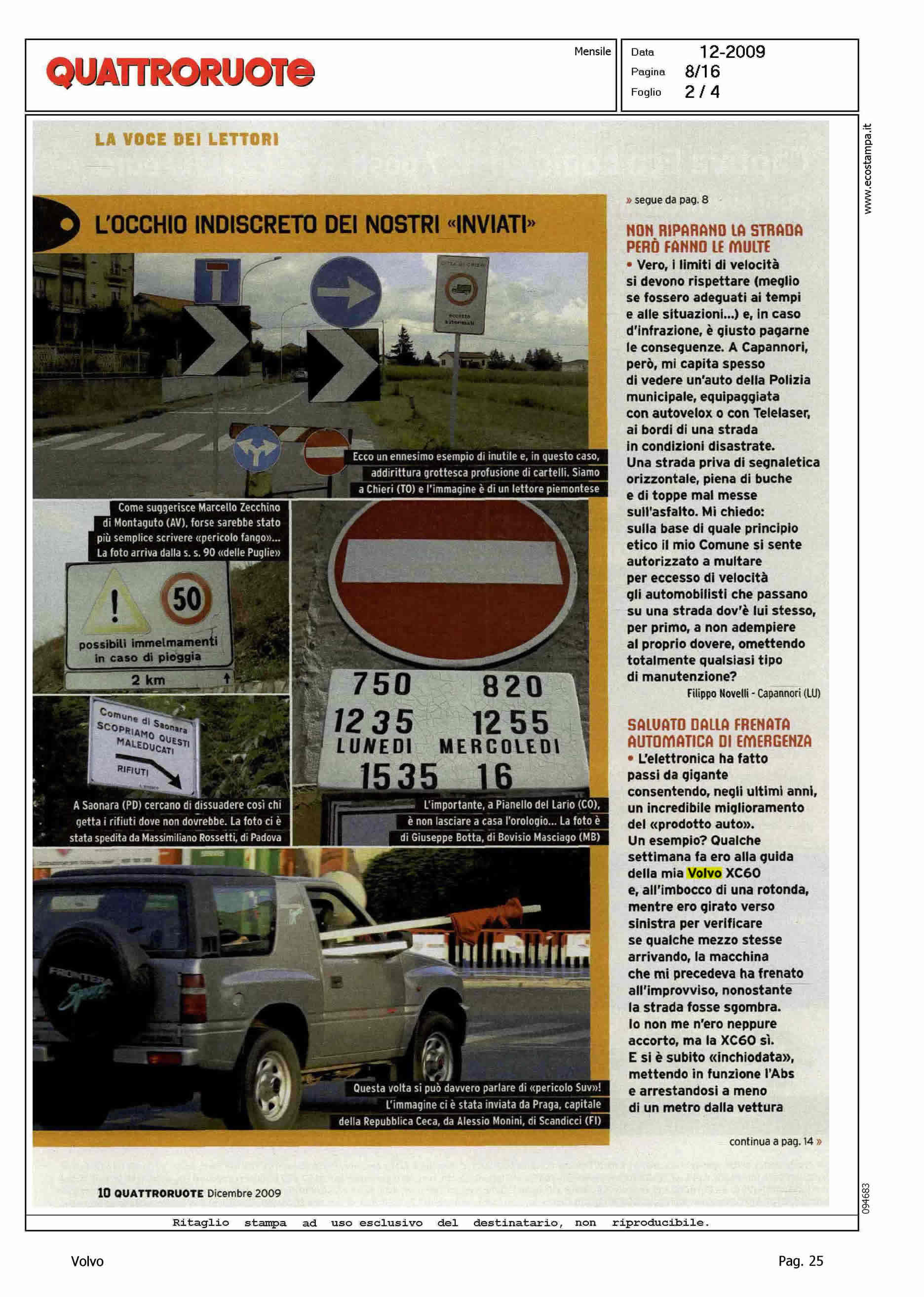 Author: Line: XC60 Model: Subject: - Title: SALVATO DALLA FRENATA AUTOMATICA DI EMERGENZAHighlight: LA VOCE DEI LETTORI