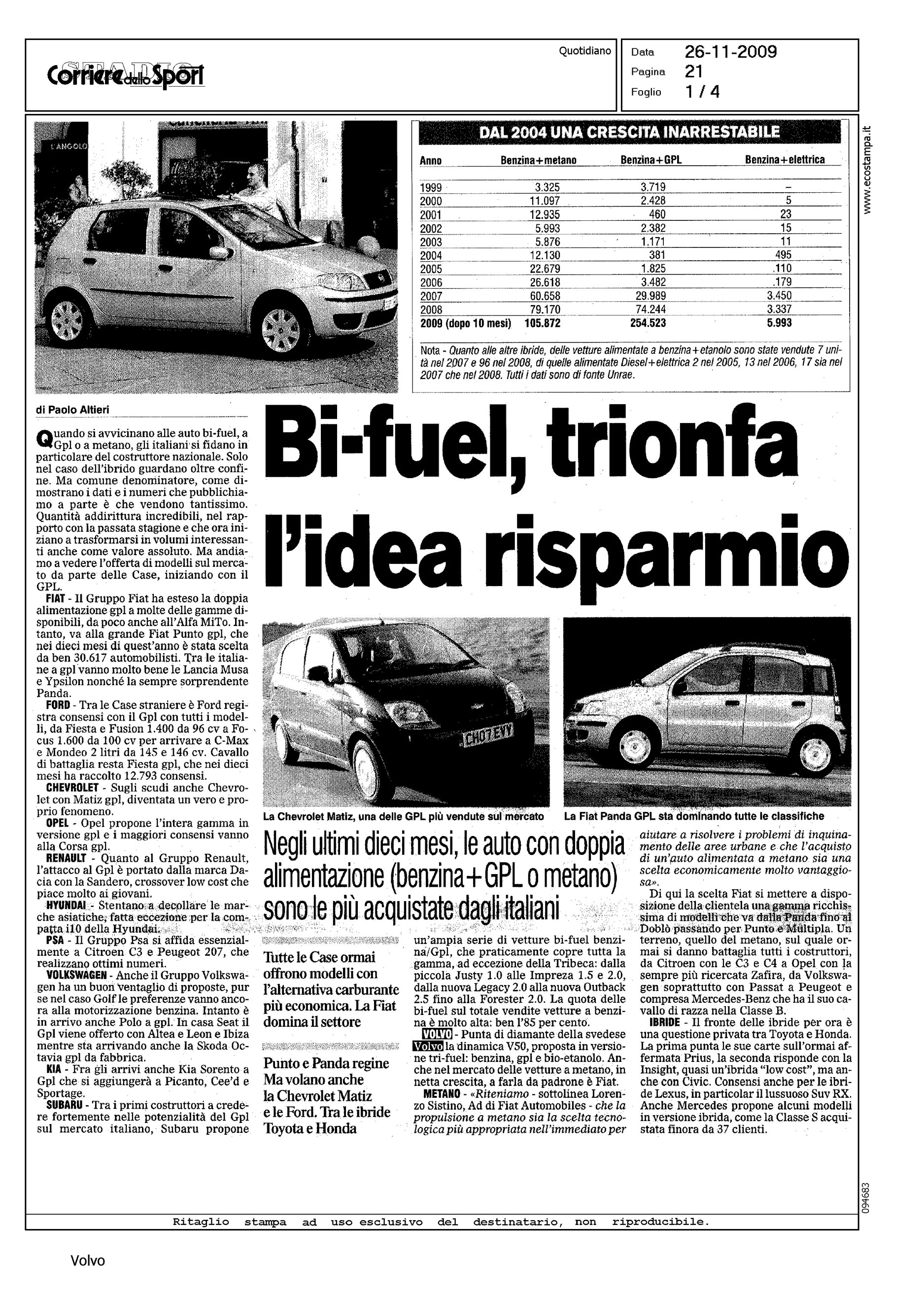 Author: ALTIERI, PAOLOLine: Corporate Model: Volvo S40 - V50 Subject: V50 Tri-Fuel Title: BI-FUEL, TRIONFA L'IDEA DEL RISPARMIOHighlight: IN COLONNA, SINTETICA PRESENTAZIONE DEL MODELLO