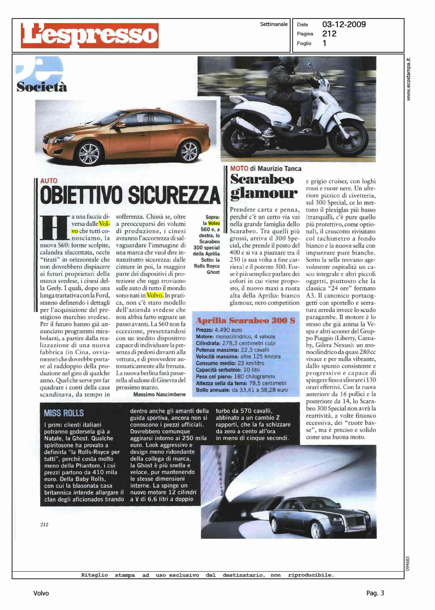 Author: NASCIMBENE, MASSIMOLine: S60 Model: Subject: - Title: AUTO - OBIETTIVO SICUREZZAHighlight: DESIGN - VENDITA VOLVO A GEELY - SICUREZZA - PASSERELLA A GINEVRA