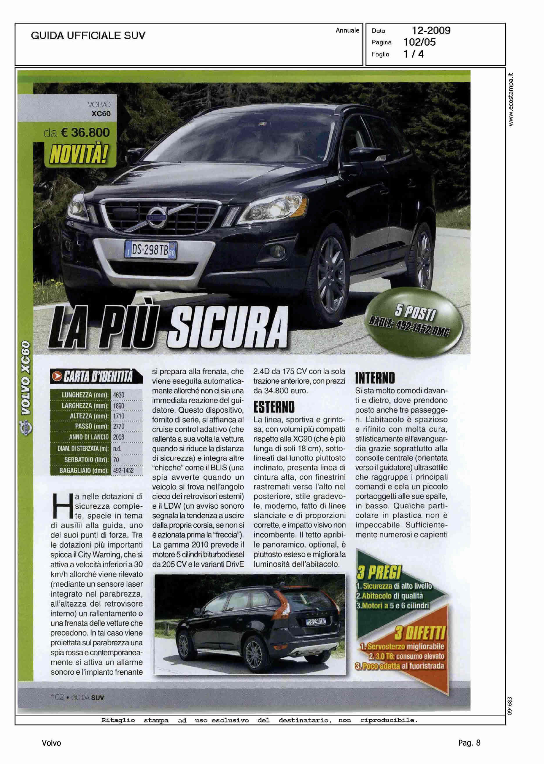Author: Line: XC60 Model: Subject: - Title: LA PIU' SICURAHighlight: SCHEDA PRESENTAZIONE PRODOTTO - DOTAZIONI DI SICUREZZA - DESIGN - INTERNI - MECCANICA