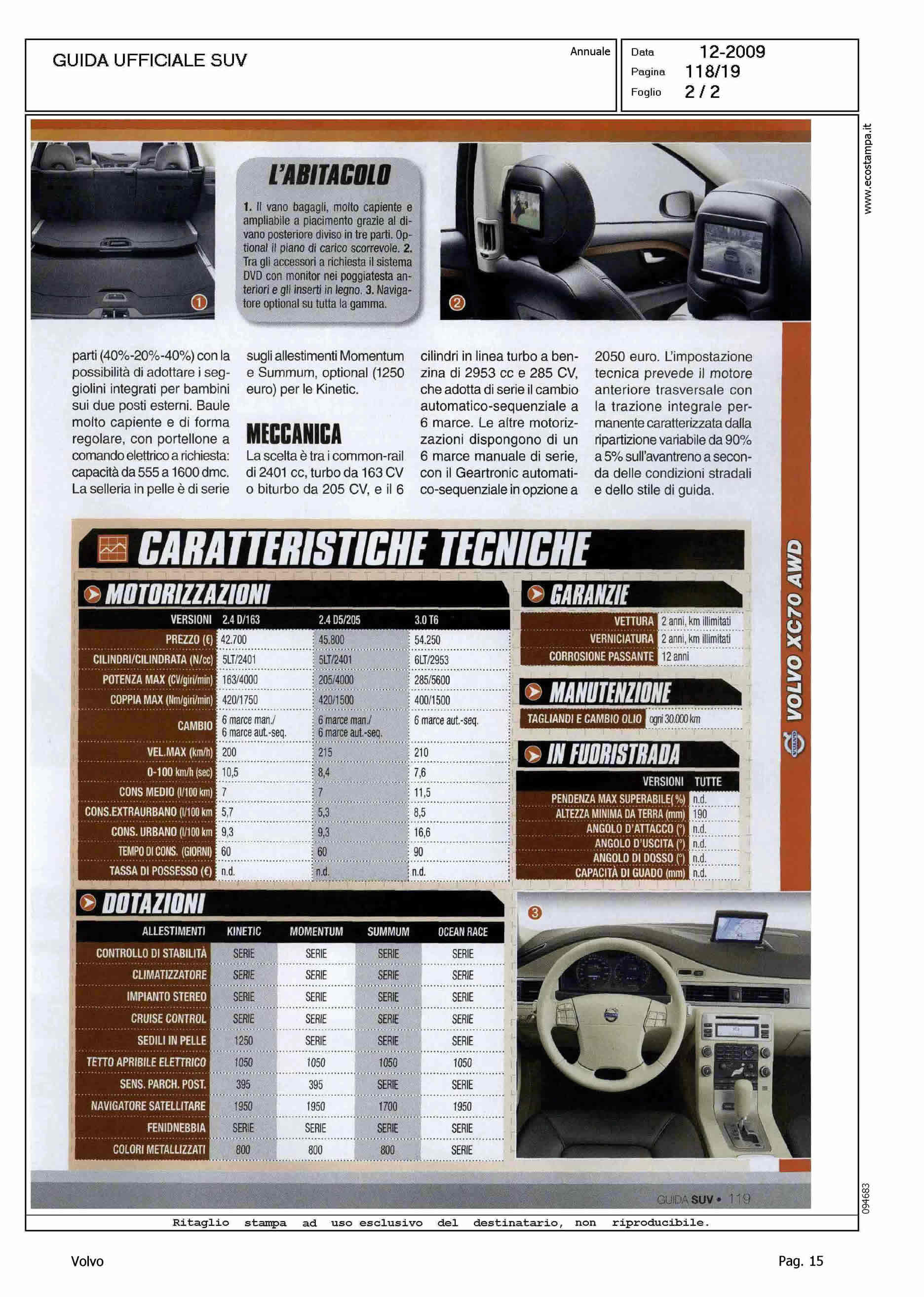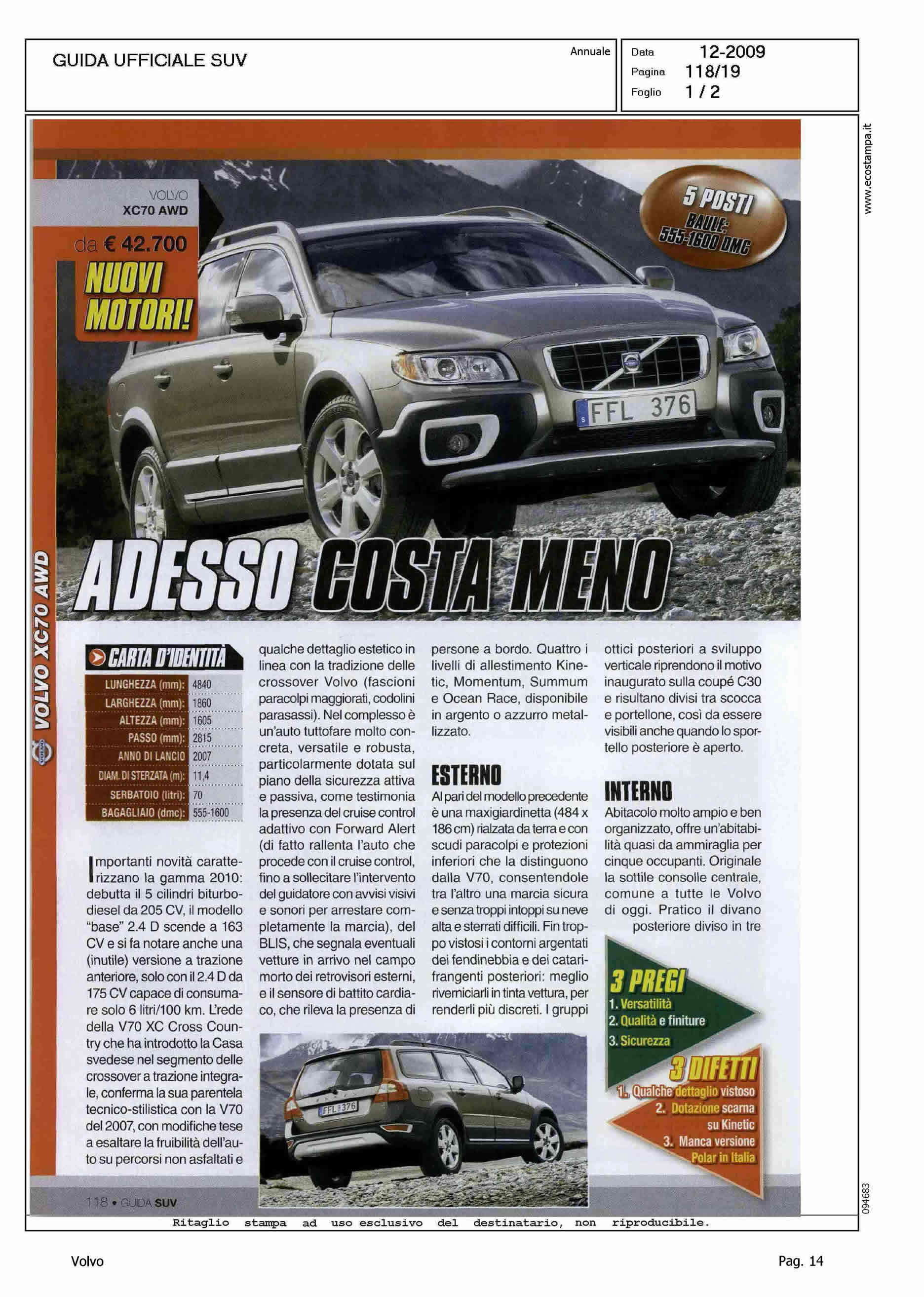 Author: Line: Corporate Model: Volvo XC70 Subject: - Title: ADESSO COSTA MENOHighlight: SCHEDA DI PRESENTAZIONE PRODOTTO - MOTORI - DESIGN - INTERNI - MECCANICA