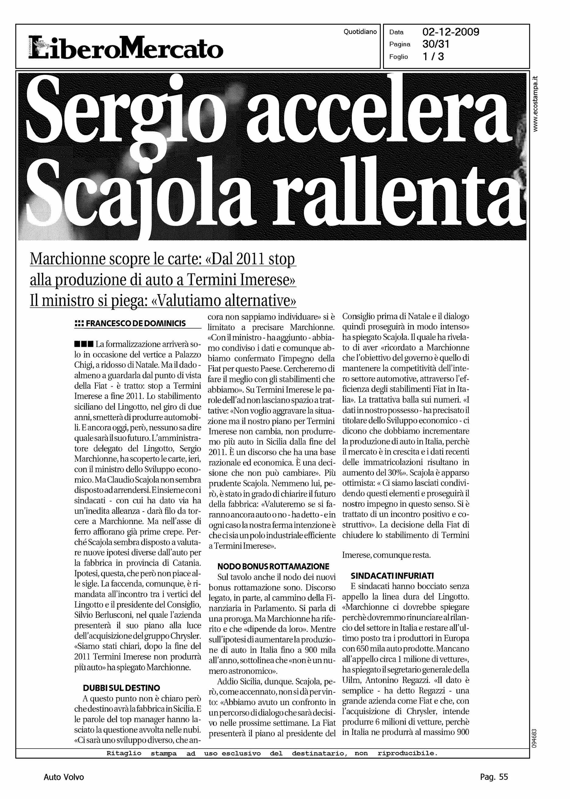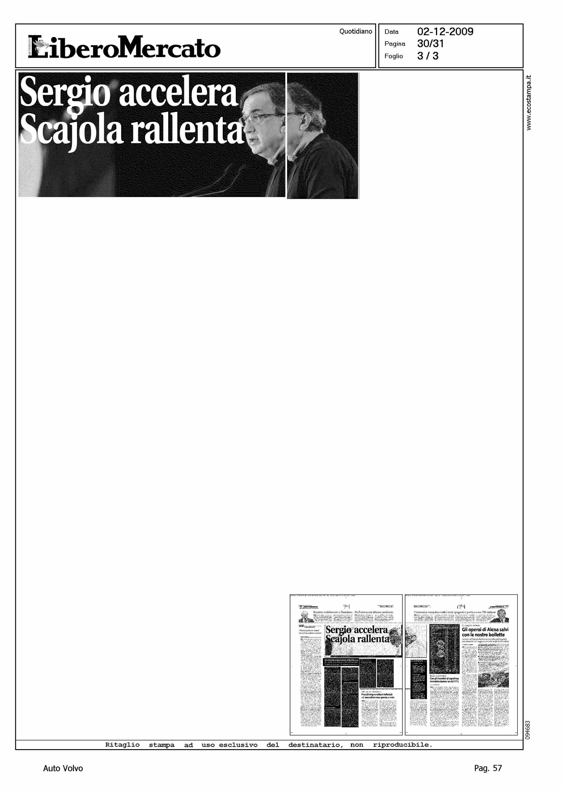 Author: DE DOMINICIS, FRANCESCOLine: Corporate Model: Corporate Subject: - Title: SERGIO ACCELERA SCAJOLA RALLENTA - IN TABELLA QUOTA VOLVOHighlight: COMMENTO ALLA NOTIZIA - IN TABELLA QUOTA VOLVO