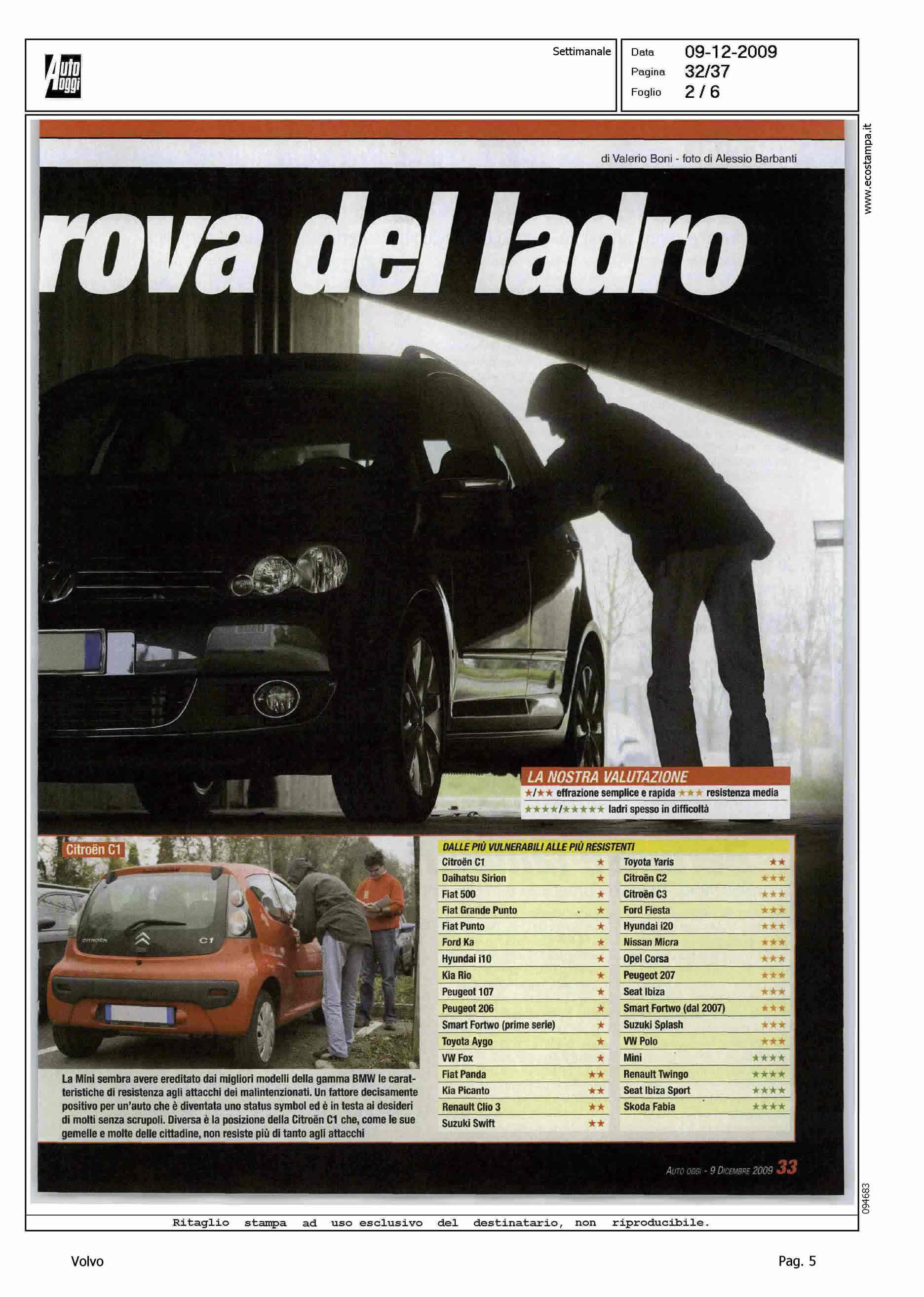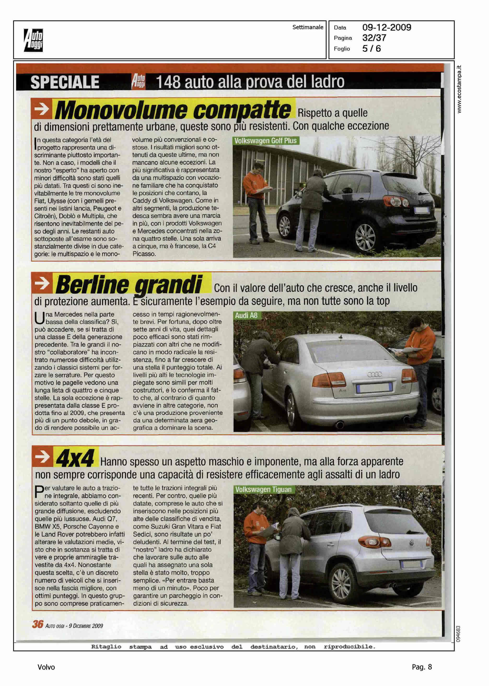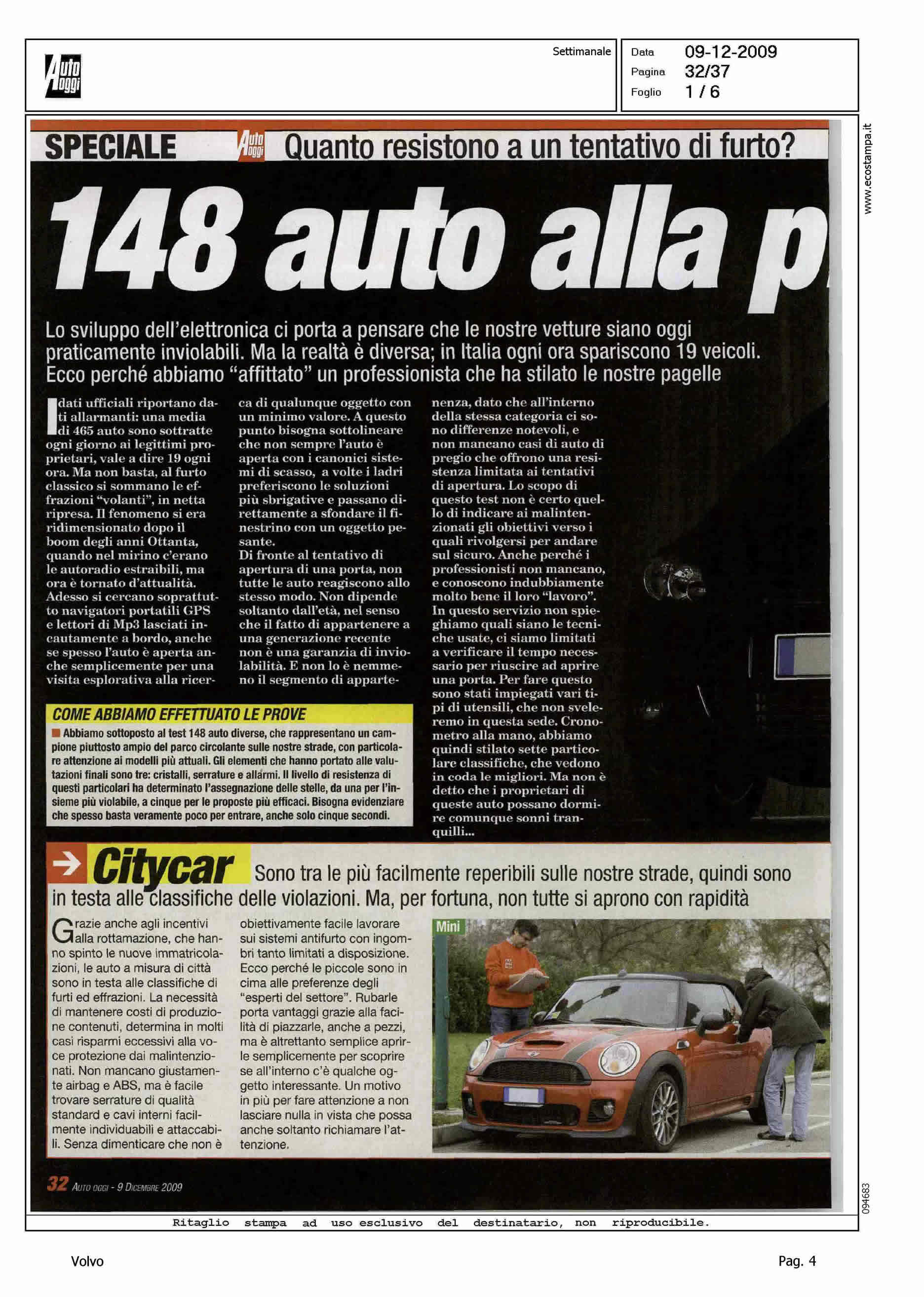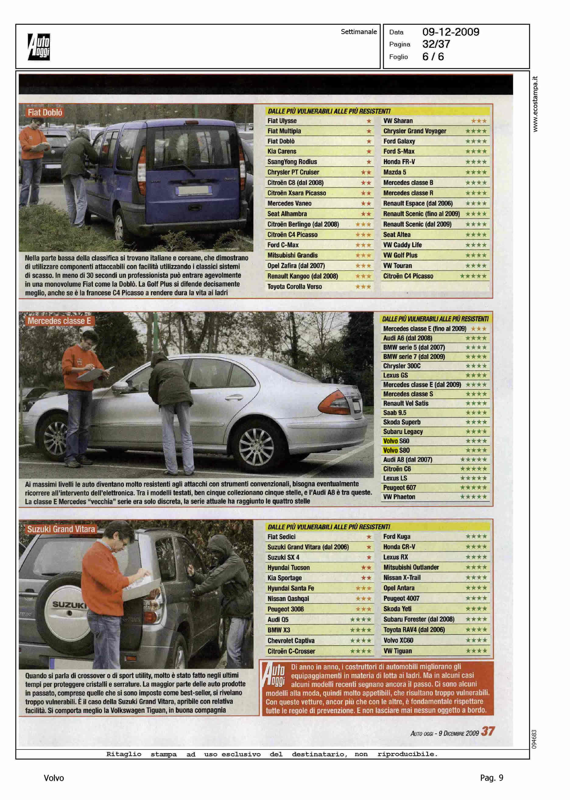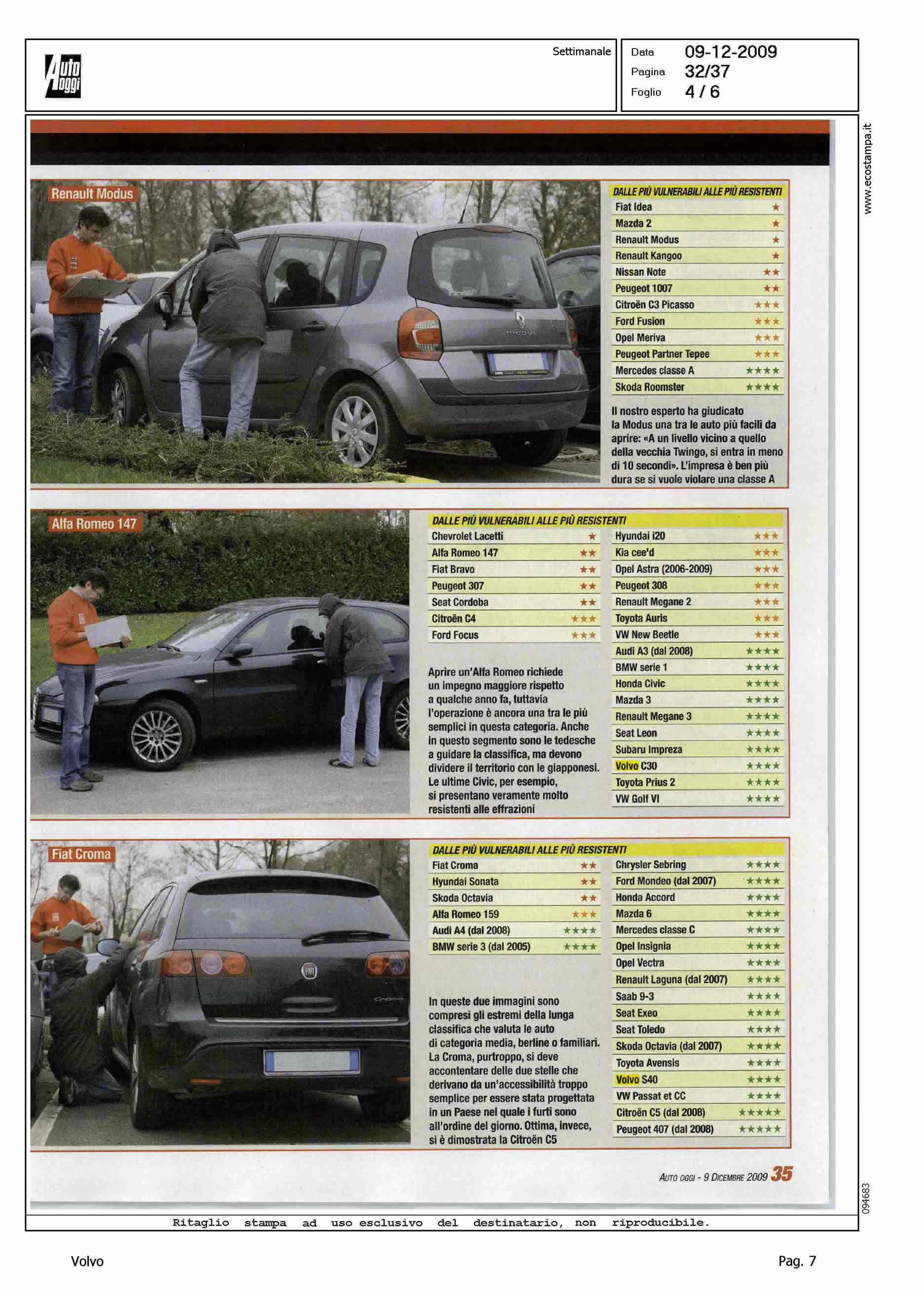 Highlight: INCHIESTA SULLA VULNERABILITA' DELL'AUTO - "PROFESSIONISTA IN AFFITTO" - CITAZIONE VOLVO IN TABELLE - POSIZIONAMENTO VOLVO CON 4 STELLE