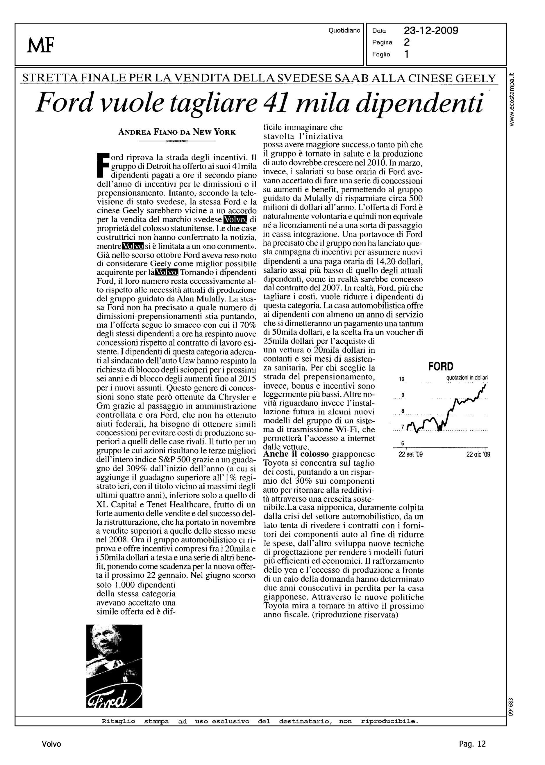 Author: FIANO, ANDREALine: Corporate Model: Corporate Subject: - Title: STRETTA FINALE PER LA VENDITA DELLA SVEDESE (SAAB!) ALLA CINESE GEELYHighlight: VENDITA VOLVO ALLA GEELY, TRATTATIVE IN STADIO FINALE
