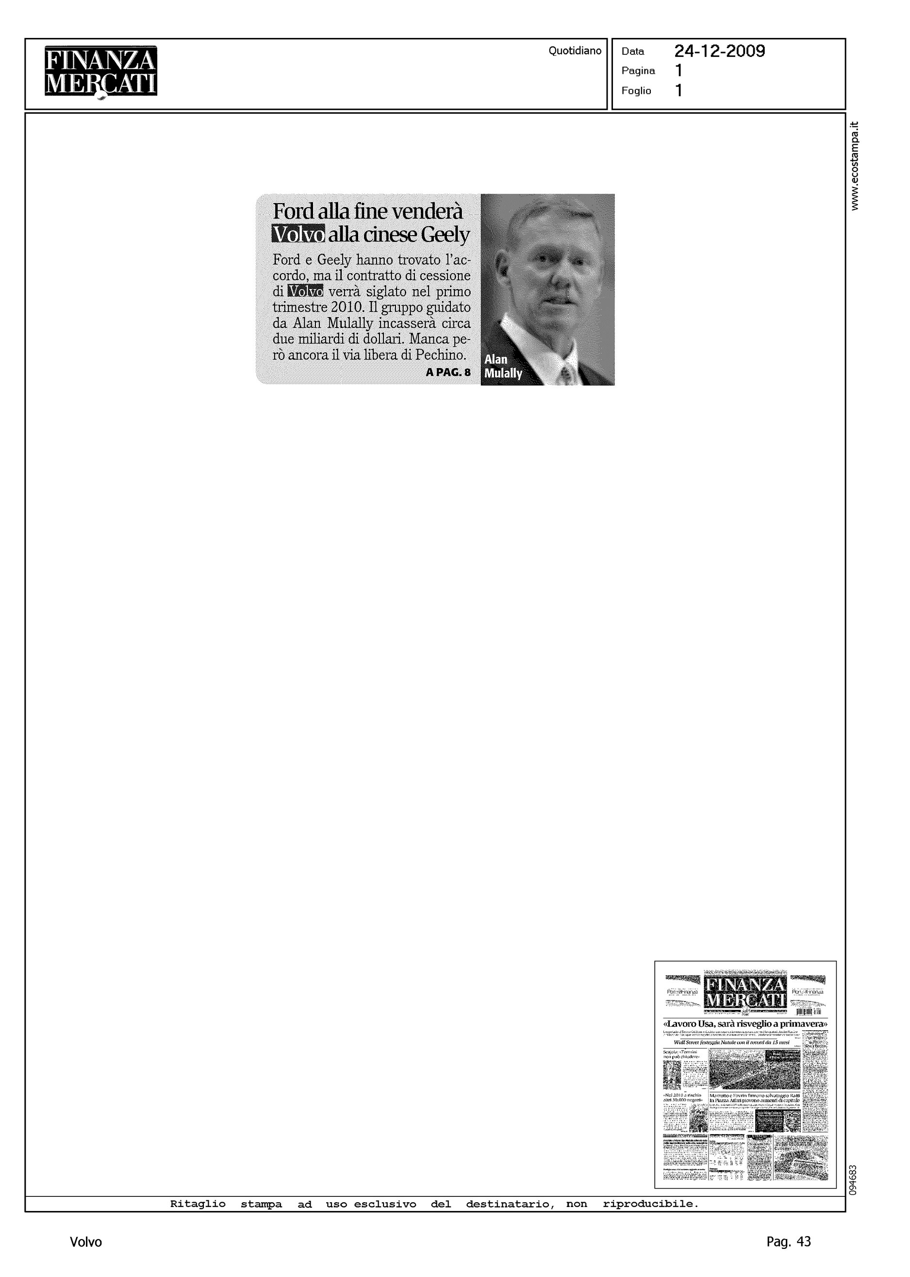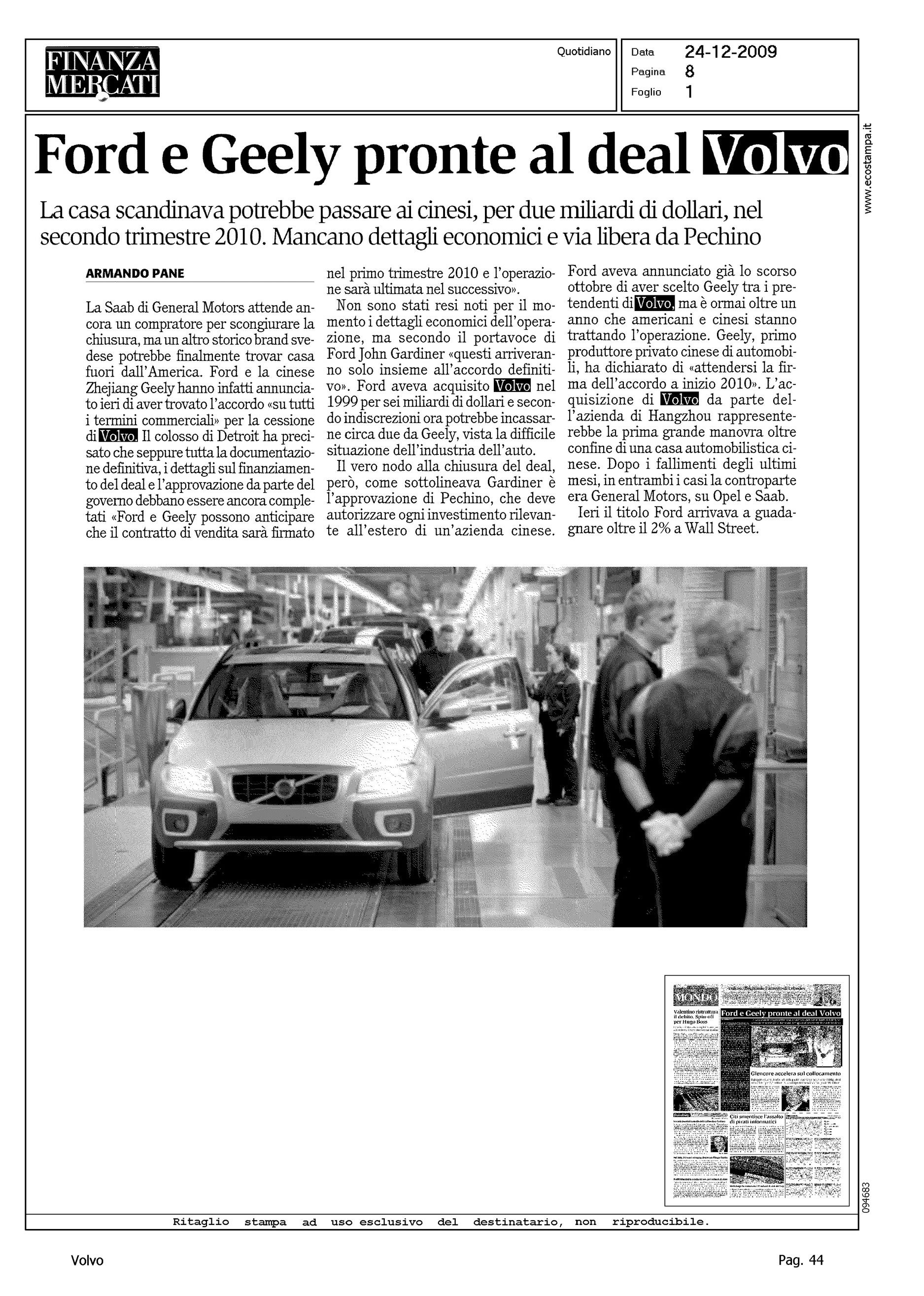 Author: PANE, ARMANDOLine: Corporate Model: Corporate Subject: - Title: FORD E GEELY PRONTE AL DEAL VOLVOHighlight: VENDITA VOLVO ALLA GEELY