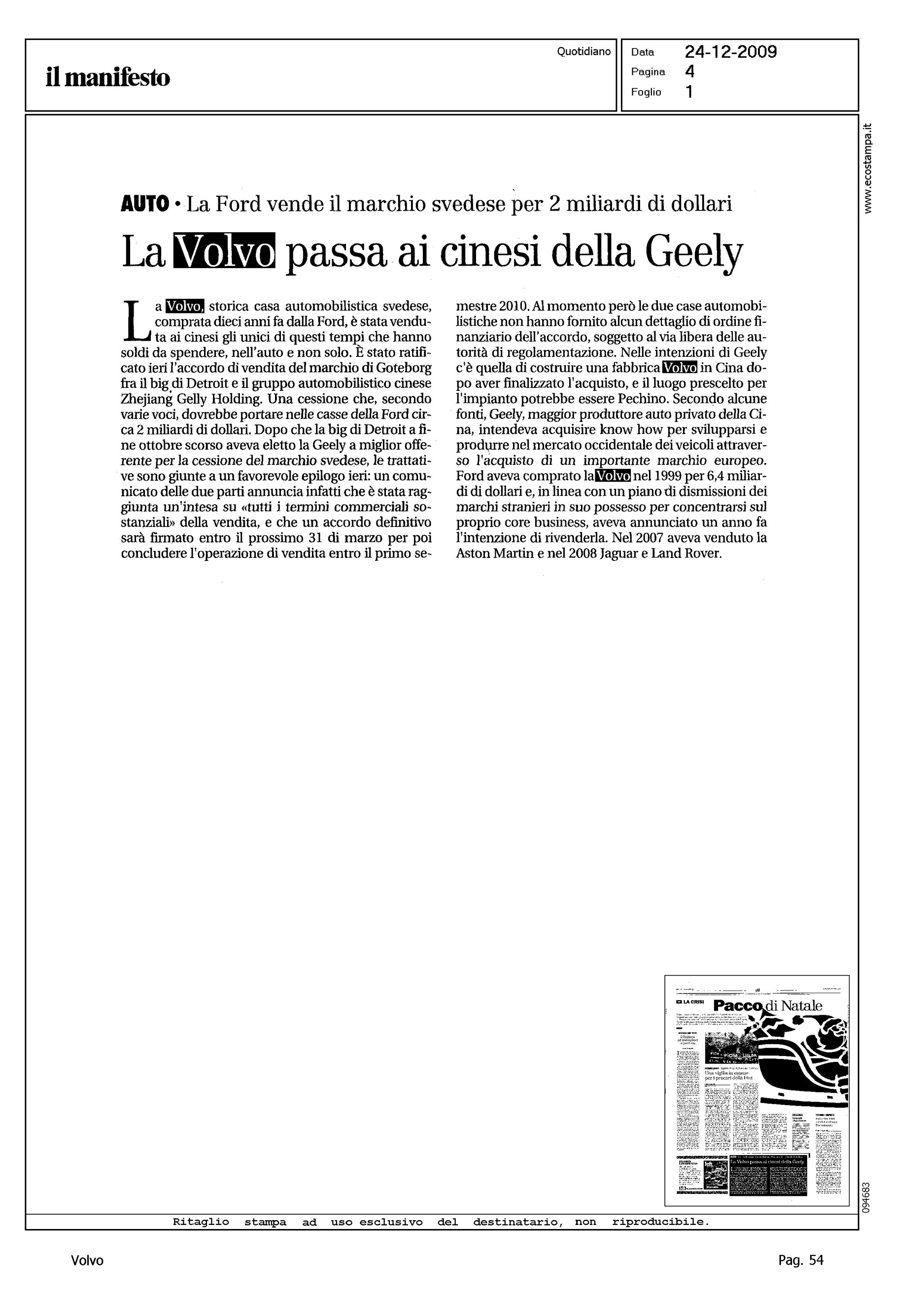 Author: Line: Corporate Model: Corporate Subject: - Title: LA VOLVO PASSA AI CINESI DELLA GEELYHighlight: VENDITA VOLVO ALLA GEELY