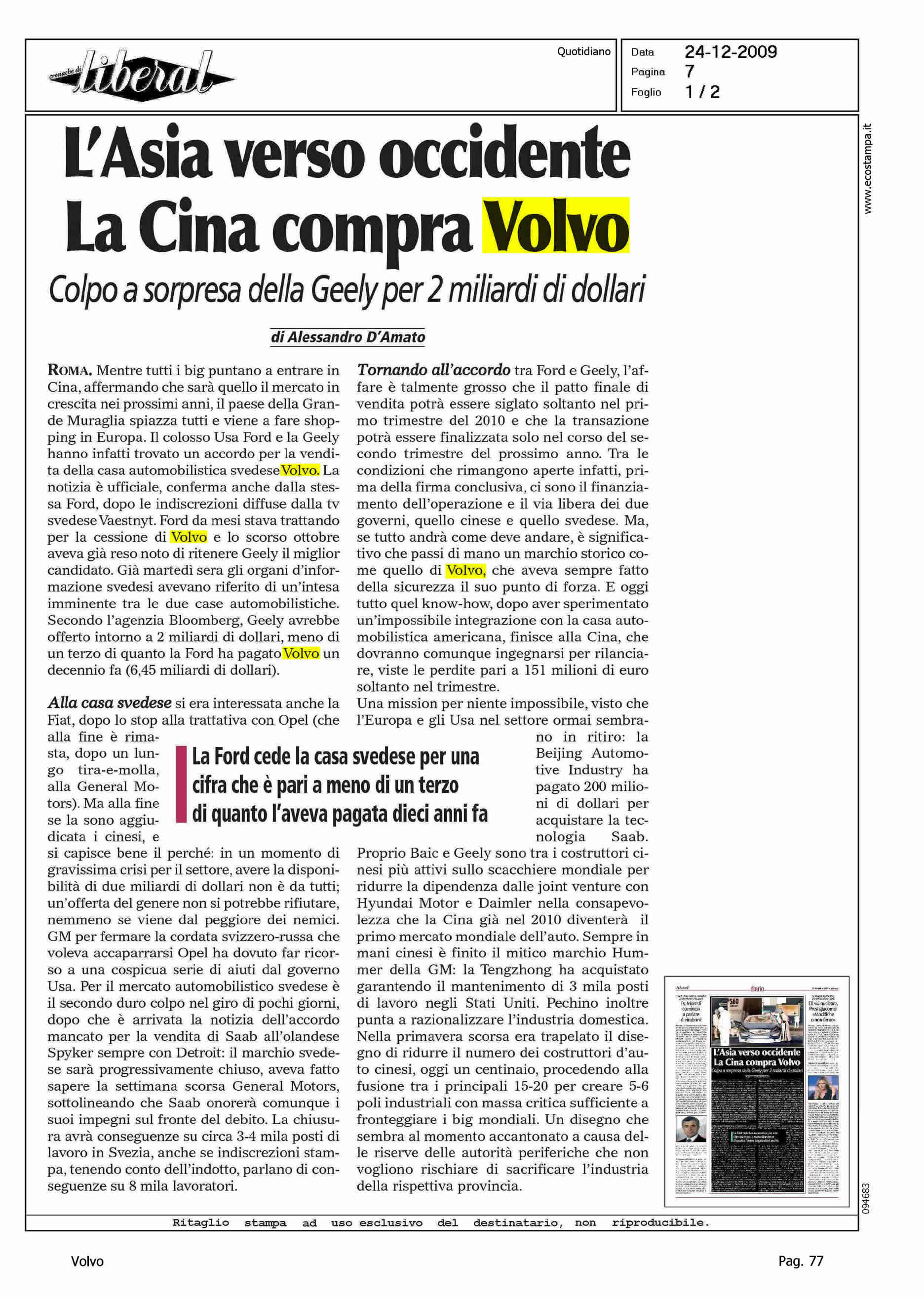 Author: D'AMATO, ALESSANDROLine: Corporate Model: Corporate Subject: - Title: L'ASIA VERSO OCCIDENTE - LA CINA COMPRA VOLVOHighlight: VENDITA VOLVO ALLA GEELY