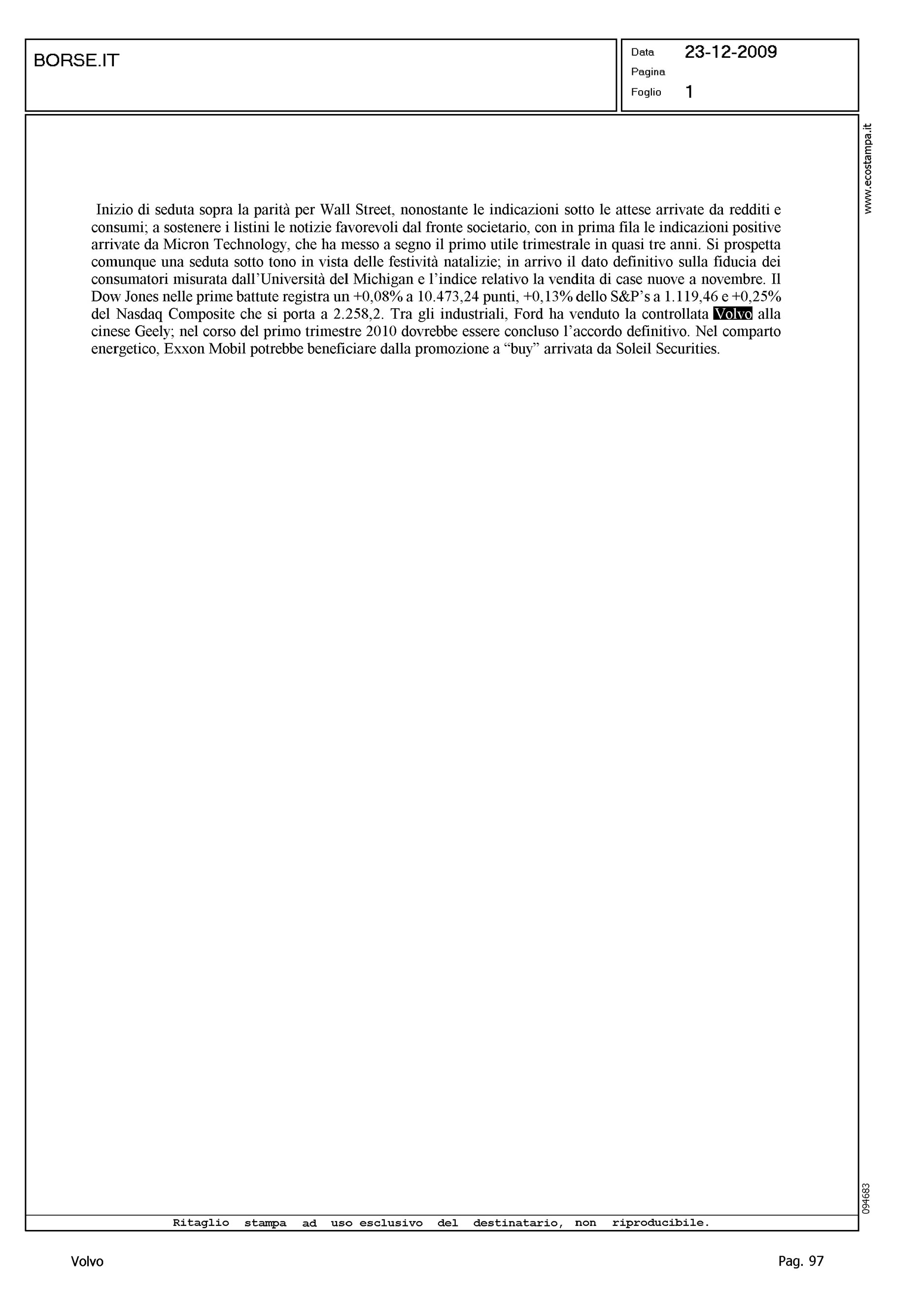 Author: Line: Corporate Model: Corporate Subject: - Title: INIZIO DI SEDUTA...Highlight: VENDITA VOLVO ALLA GEELY