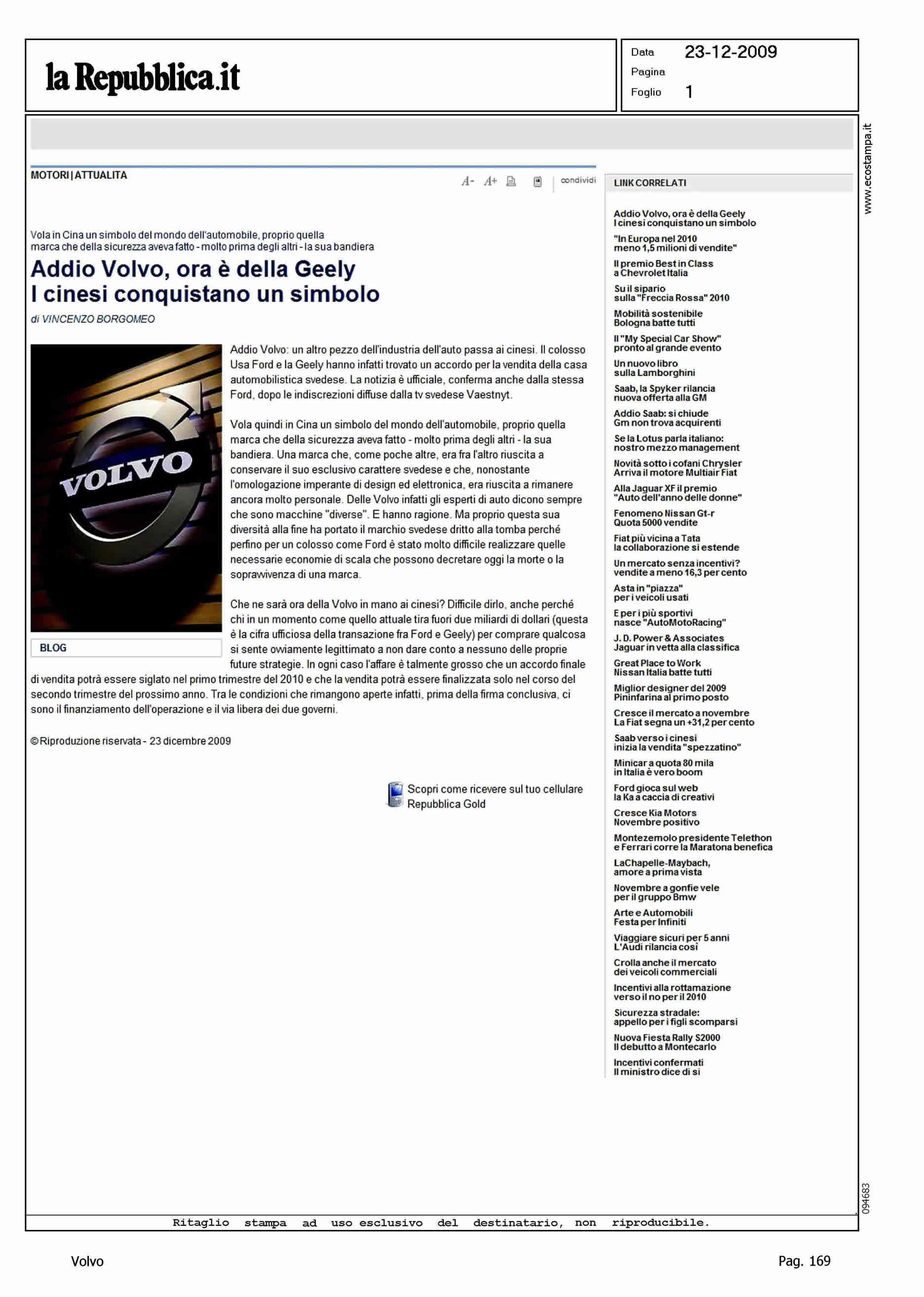 Author: BORGOMEO, VINCENZOLine: Corporate Model: Corporate Subject: - Title: ADDIO A VOLVO, ORA E' DELLA GEELY - I CINESI CONQUISTANO UN SIMBOLOHighlight: VENDITA VOLVO ALLA GEELY