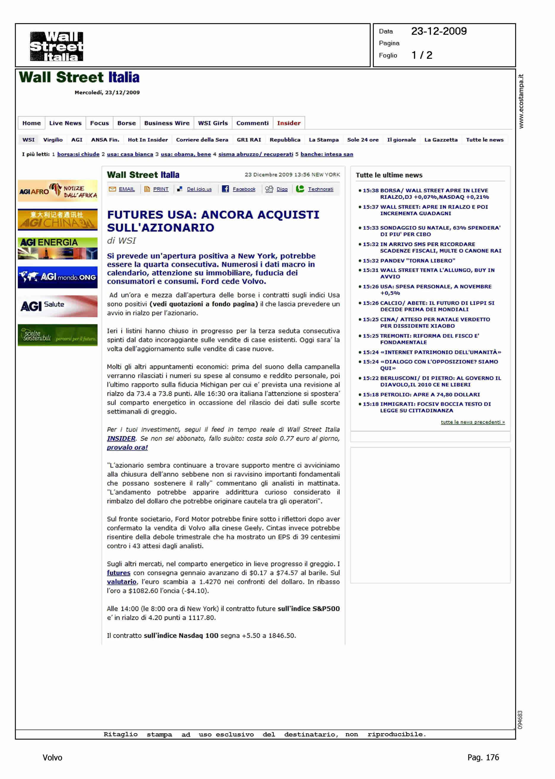 Author: Line: Corporate Model: Corporate Subject: - Title: FORD CEDE VOLVOHighlight: VENDITA VOLVO ALLA GEELY