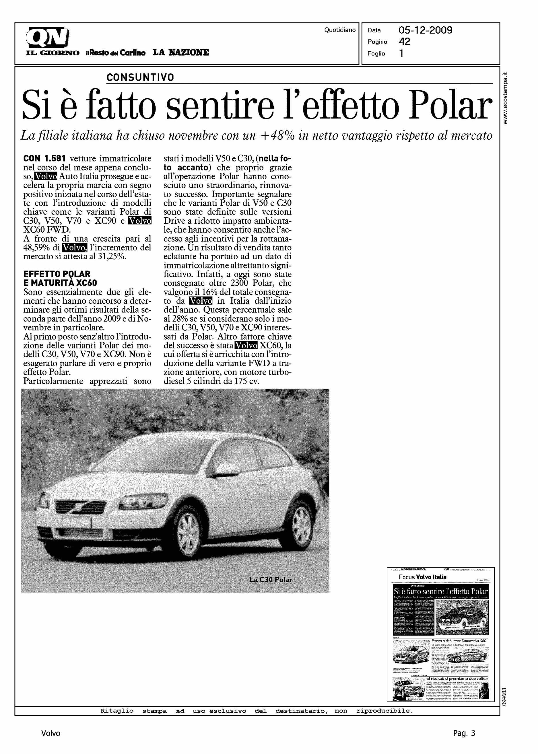 Author: Line: Corporate Model: Corporate Subject: - Title: SE E' FATTO SENTIRE L'EFFETTO POLARHighlight: VOLVO ITALIA SUL MERCATO ITALIANO