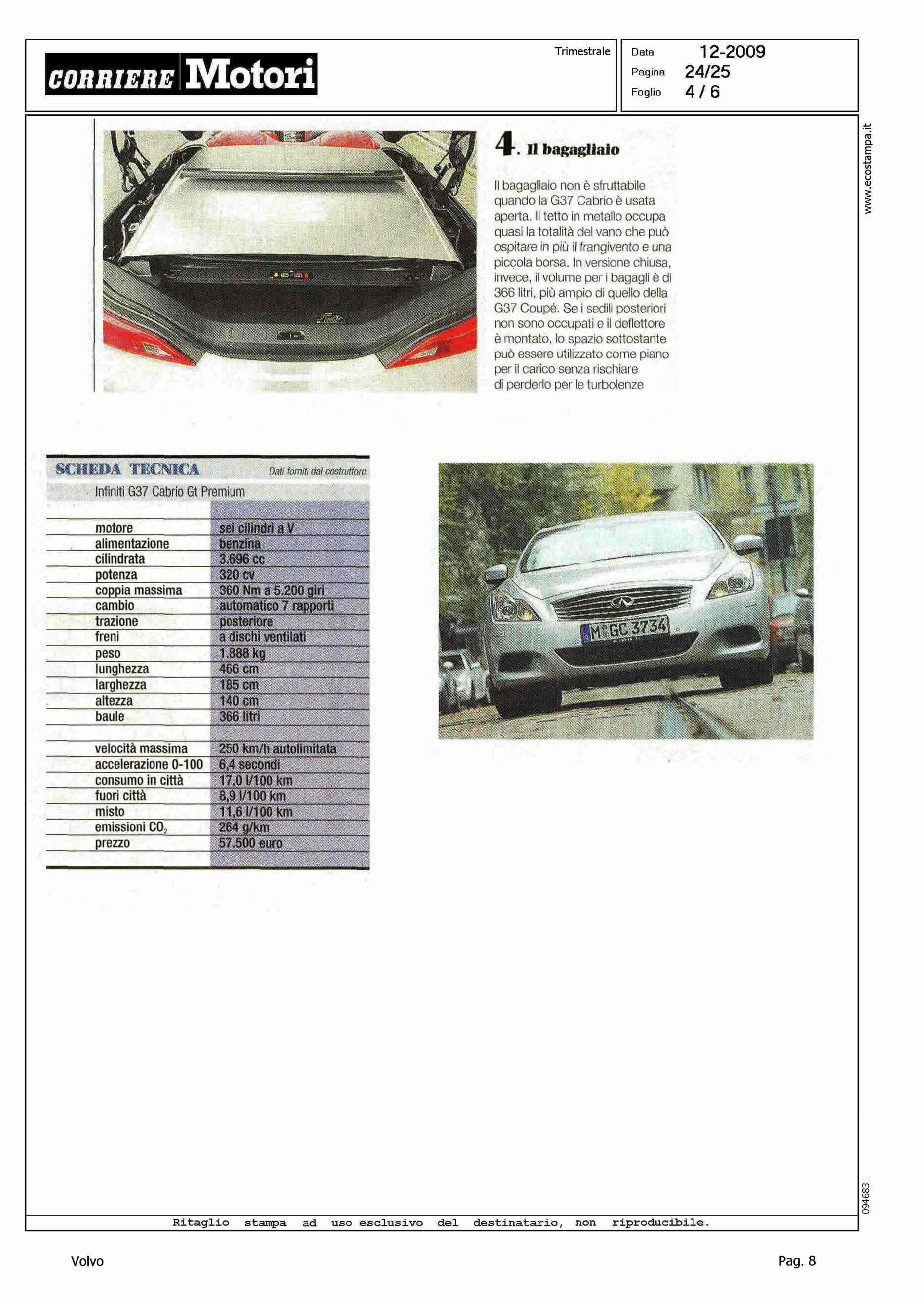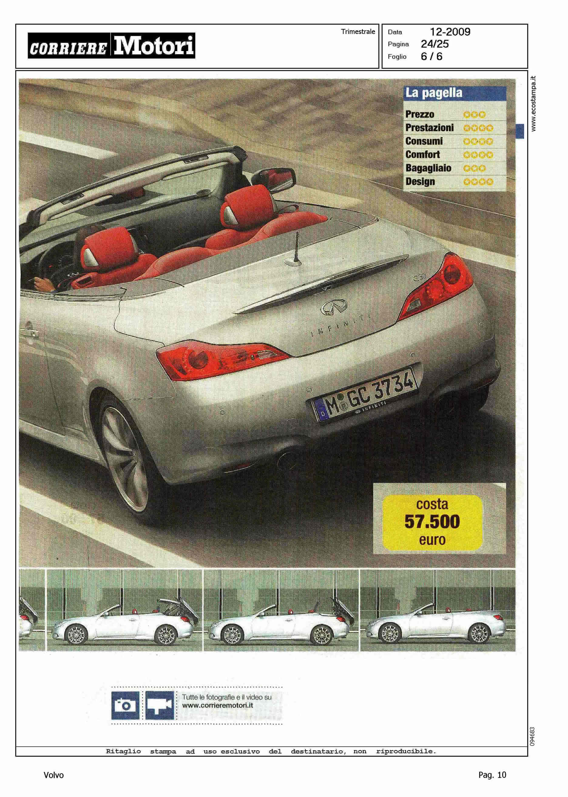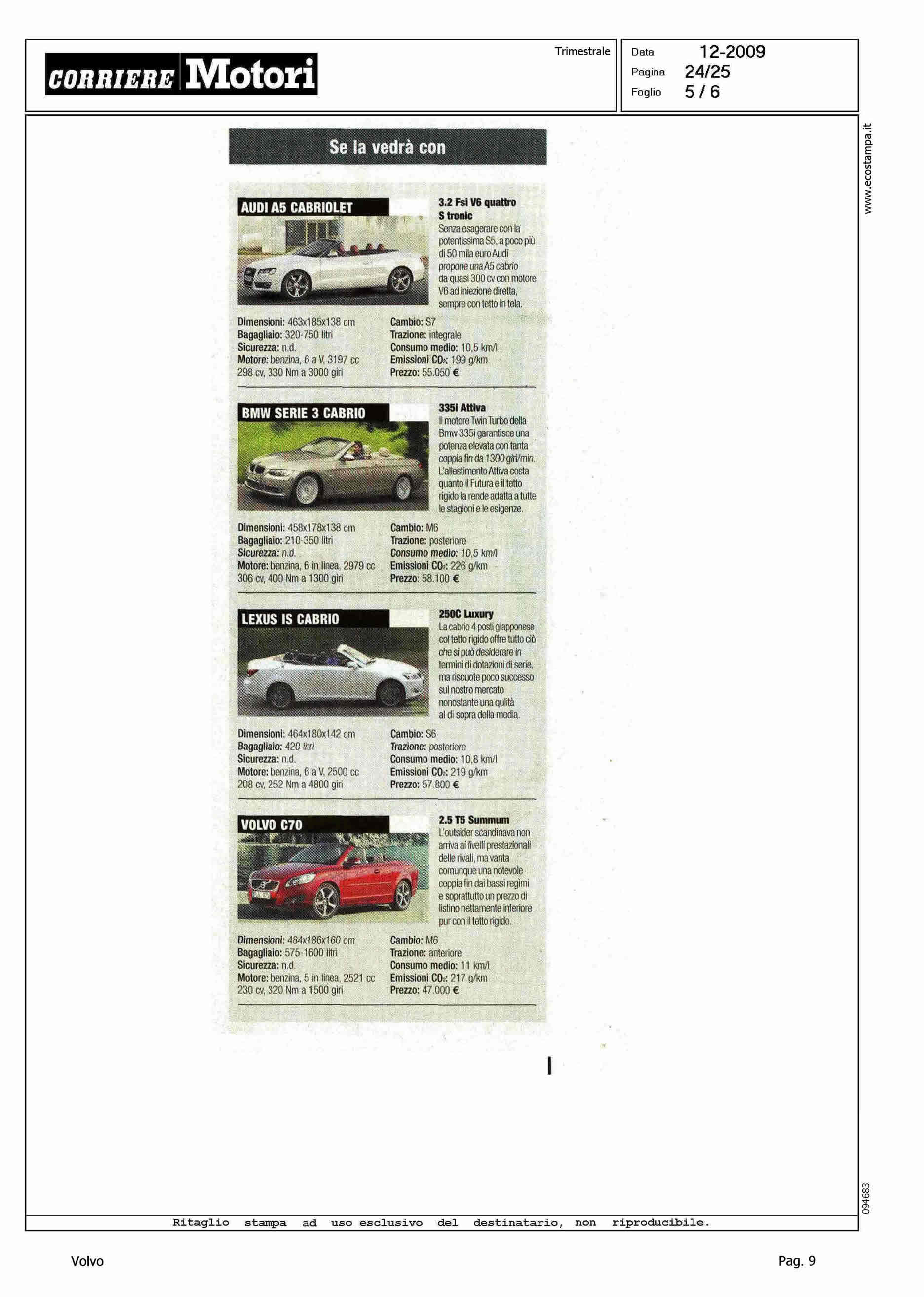 Author: ARTEMI, PAOLOLine: Corporate Model: Volvo C70 Convertible Subject: - Title: SE LA VEDRA' CONHighlight: C70, COMPETITOR vs INFINITI G37 CABRIO - SCHEDA PRODOTTO IN ARTICOLO
