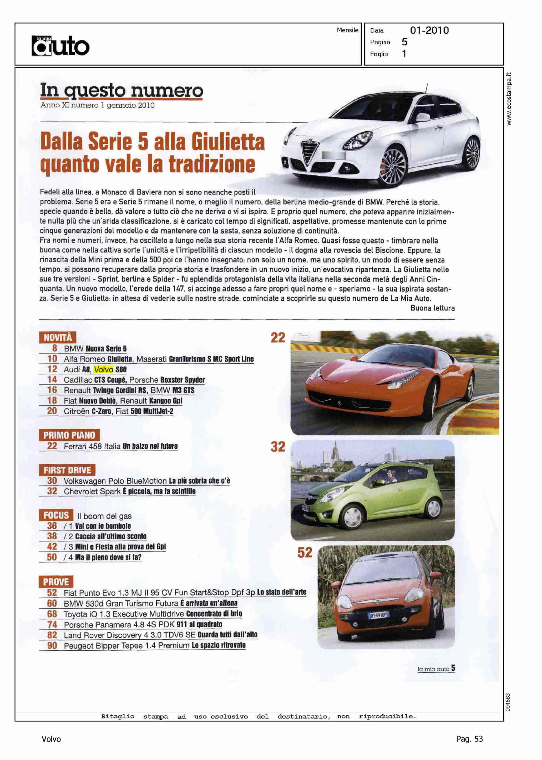 Author: Line: S60 Model: Subject: - Title: IN QUESTO NUMERO - VOLVO S60, PROTEGGE ANCHE I PEDONIHighlight: GINEVRA - DESIGN - SICUREZZA - PEDESTRIAN DETECTION - MOTORI - NUOVO MOTORE BENZINA