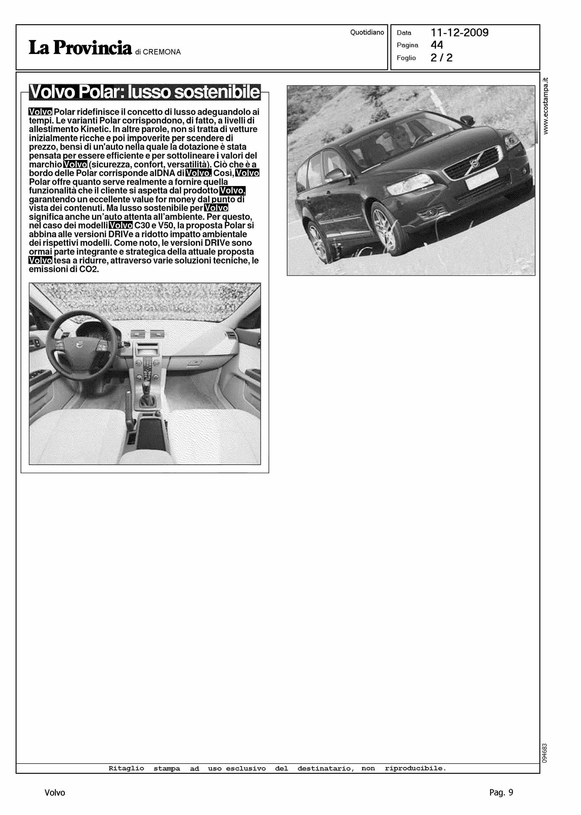 Author: Line: Corporate Model: Volvo S40 - V50 Subject: - Title: VOLVO POLAR: LUSSO SOSTENIBILEHighlight: PROFILO DELLA GAMMA - AMBIENTE