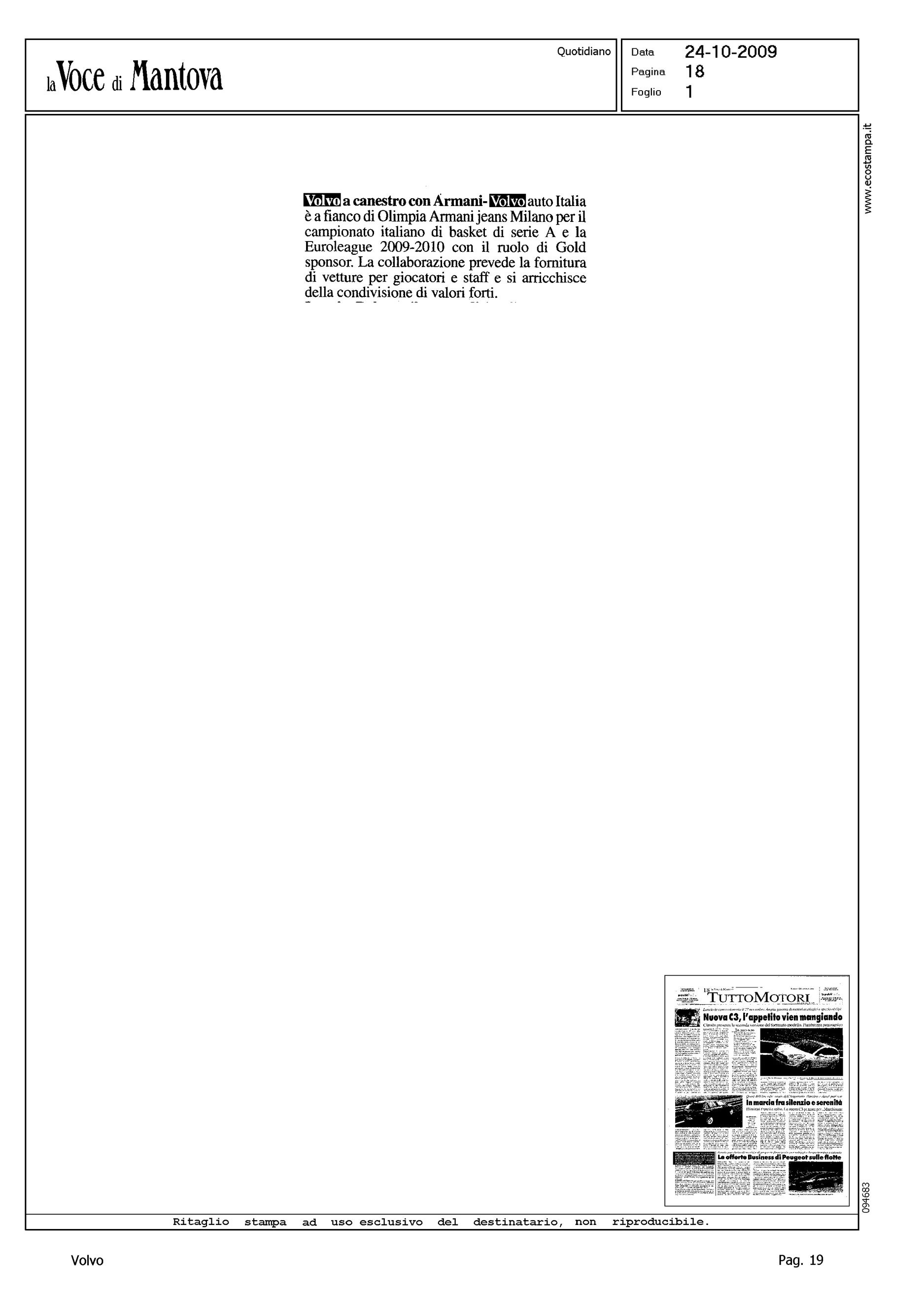 Author: Line: Corporate Model: Corporate Subject: - Title: VOLVO A CANESTRO CON ARMANIHighlight: SPONSORIZZAZIONE