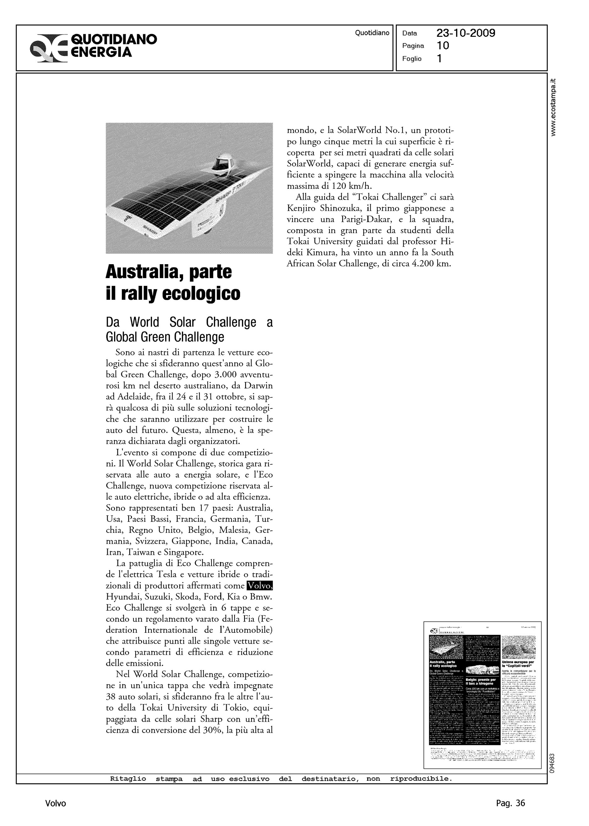 Author: Line: Corporate Model: Corporate Subject: - Title: AUSTRALIA, PARTE IL RALLY ECOLOGICOHighlight: AUSTRALIA, ECO CHALLENGE