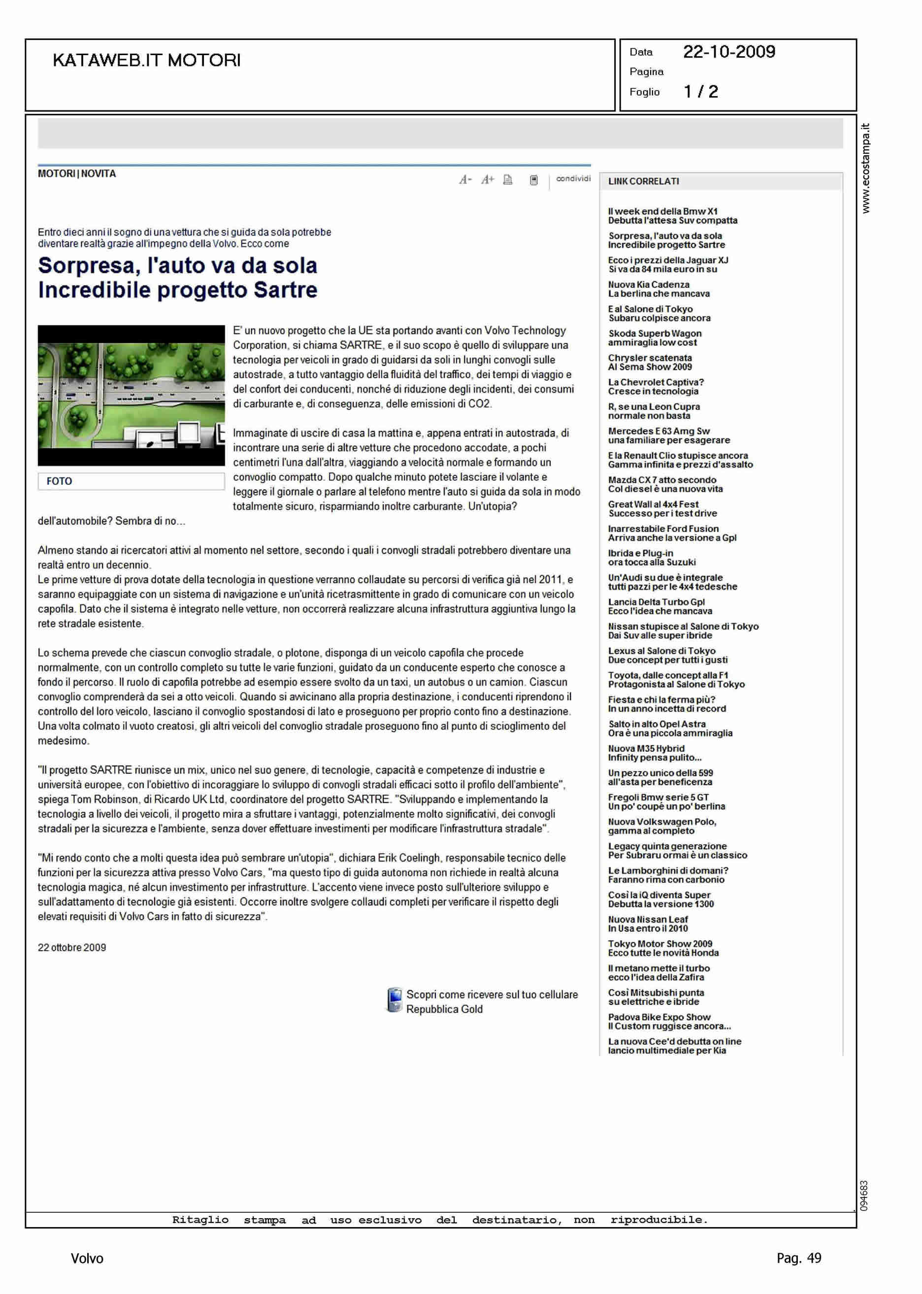 Author: Line: Corporate Model: Corporate Subject: - Title: SORPRESA, L'AUTO VA DA SOLA - INCREDIBILE PROGETTO SARTREHighlight: CONVOGLI STRADALI