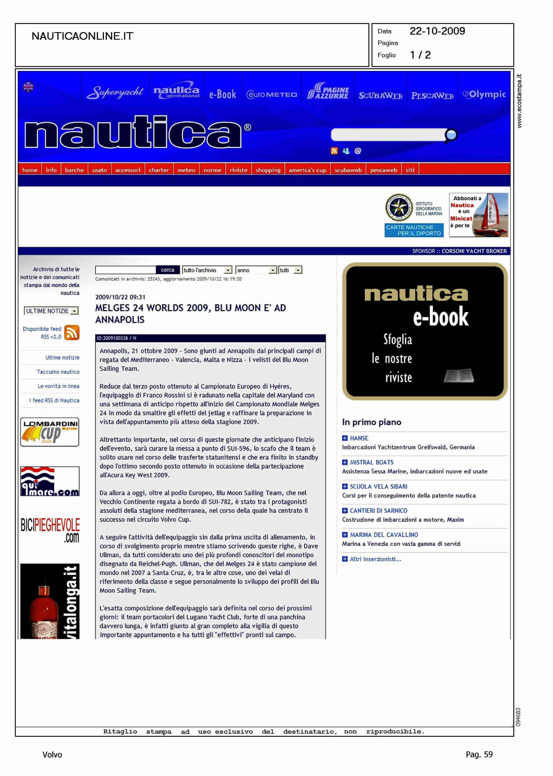 Author: Line: Corporate Model: Corporate Subject: Volvo Cup Title: MELGES 24 WORLDS 2009, BLU MOON E' AD ANNAPOLISHighlight: BLU MOON ANNAPOLIS