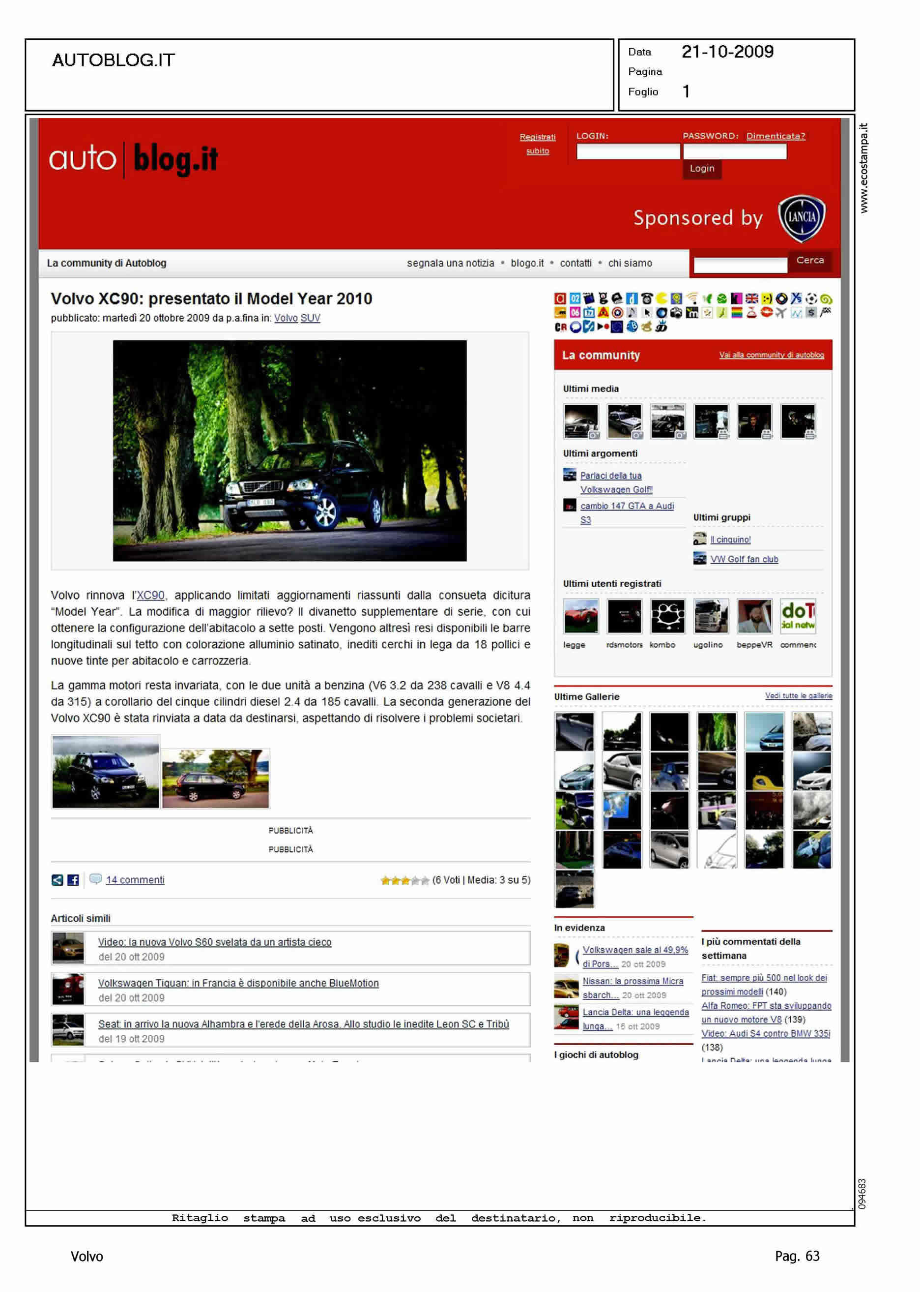 Author: Line: Corporate Model: Volvo XC90 Subject: - Title: VOLVO XC90: PRESENTATO IL MODEL YEAR 2010Highlight: SETTE POSTI DI SERIE