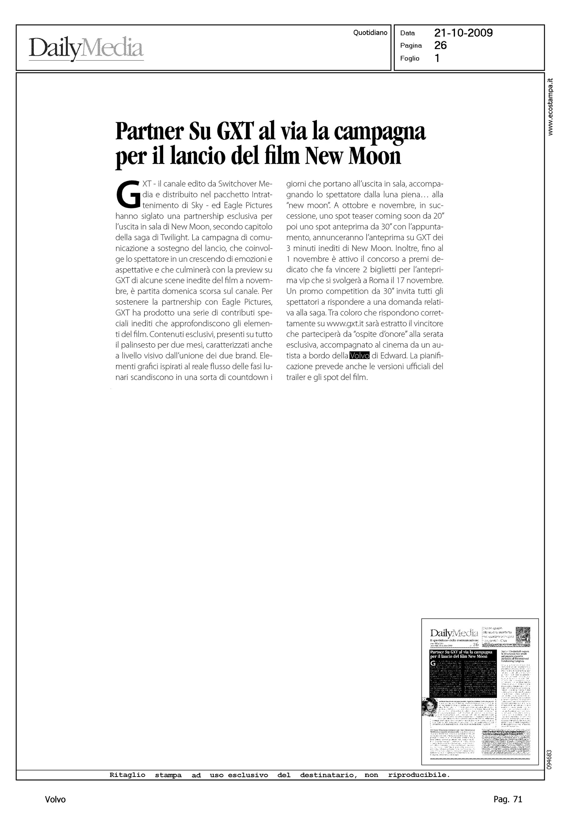 Author: Line: Corporate Model: Corporate Subject: - Title: PARTNER SU GXT AL VIA LA CAMPAGNA PER IL LANCIO DEL FILM NEW MOONHighlight: SPONSORIZZAZIONE