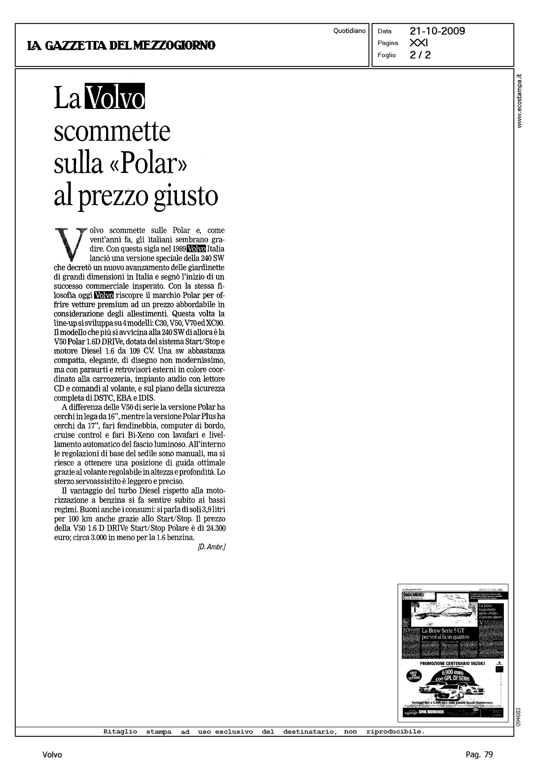 Author: Line: Corporate Model: Corporate Subject: - Title: LA VOLVO SCOMMETTE SULLA "POLAR" AL PREZZO GIUSTOHighlight: P.PRODOTTO GAMMA COMPLETA