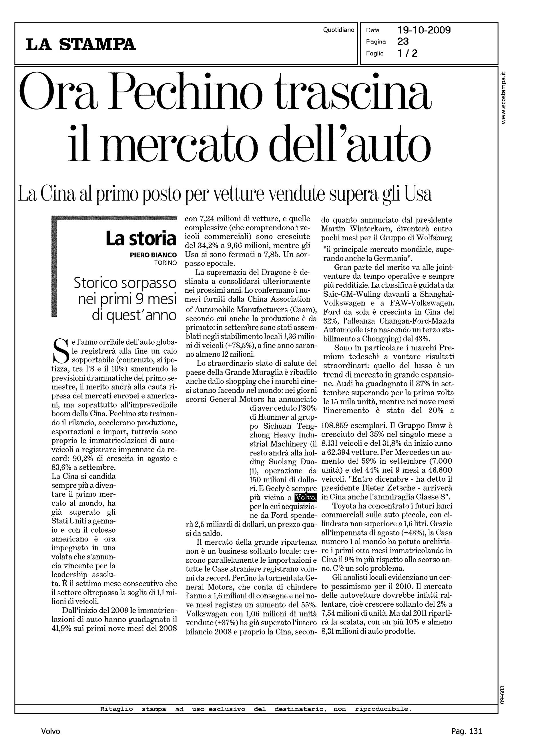Author: BIANCO, PIEROLine: Corporate Model: Corporate Subject: - Title: ORA PECHINO TRASCINA IL MERCATO DELL'AUTOHighlight: MERCATO AUTO CINA SUPERA STATI UNITI