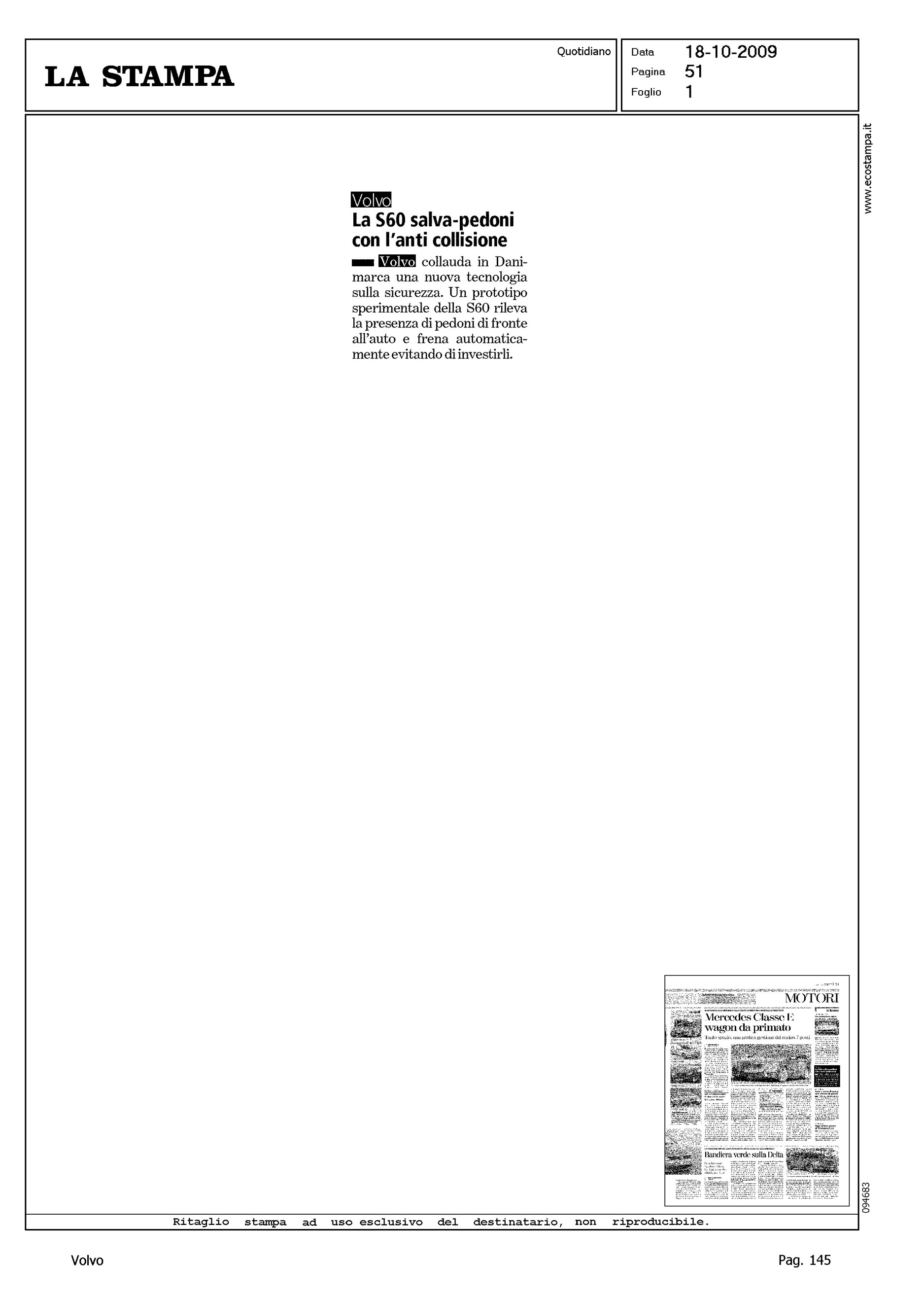 Author: Line: S60 Model: Subject: - Title: VOLVO - LA S60 SALVA-PEDONI CON L'ANTI COLLISIONEHighlight: PEDESTRIAN DETECTION