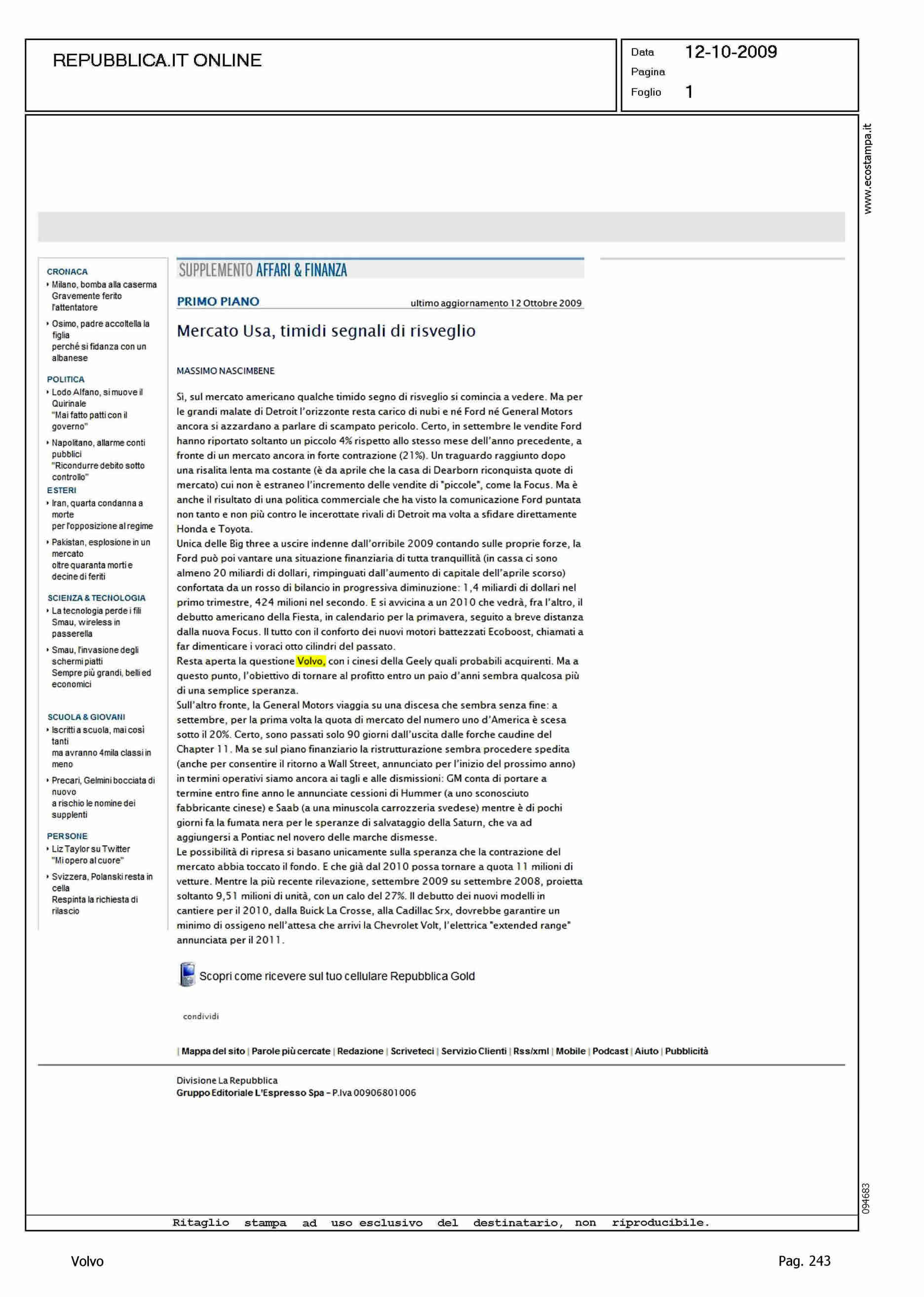 Author: Line: Corporate Model: Corporate Subject: - Title: MERCATO USA, TIMIDI SEGNALI DI RISVEGLIOHighlight: MERCATO USA