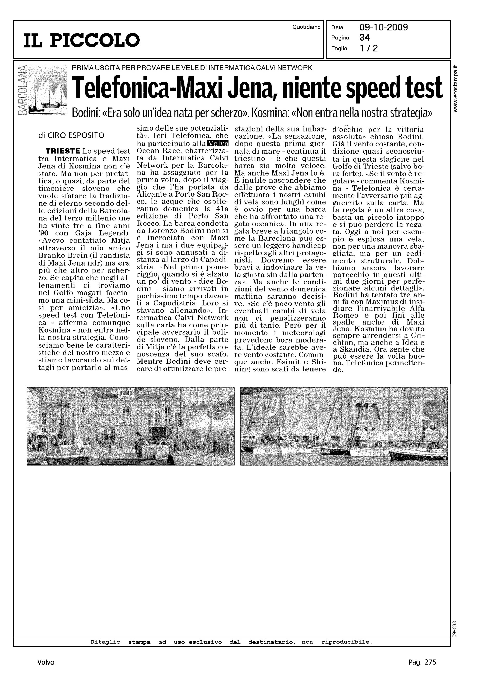Author: ESPOSITO, CIROLine: Corporate Model: Corporate Subject: Volvo Ocean Race Title: TELEFONICA-MAXI JENA, NIENTE SPEED TESTHighlight: TELEFONICA - MAXI JENA