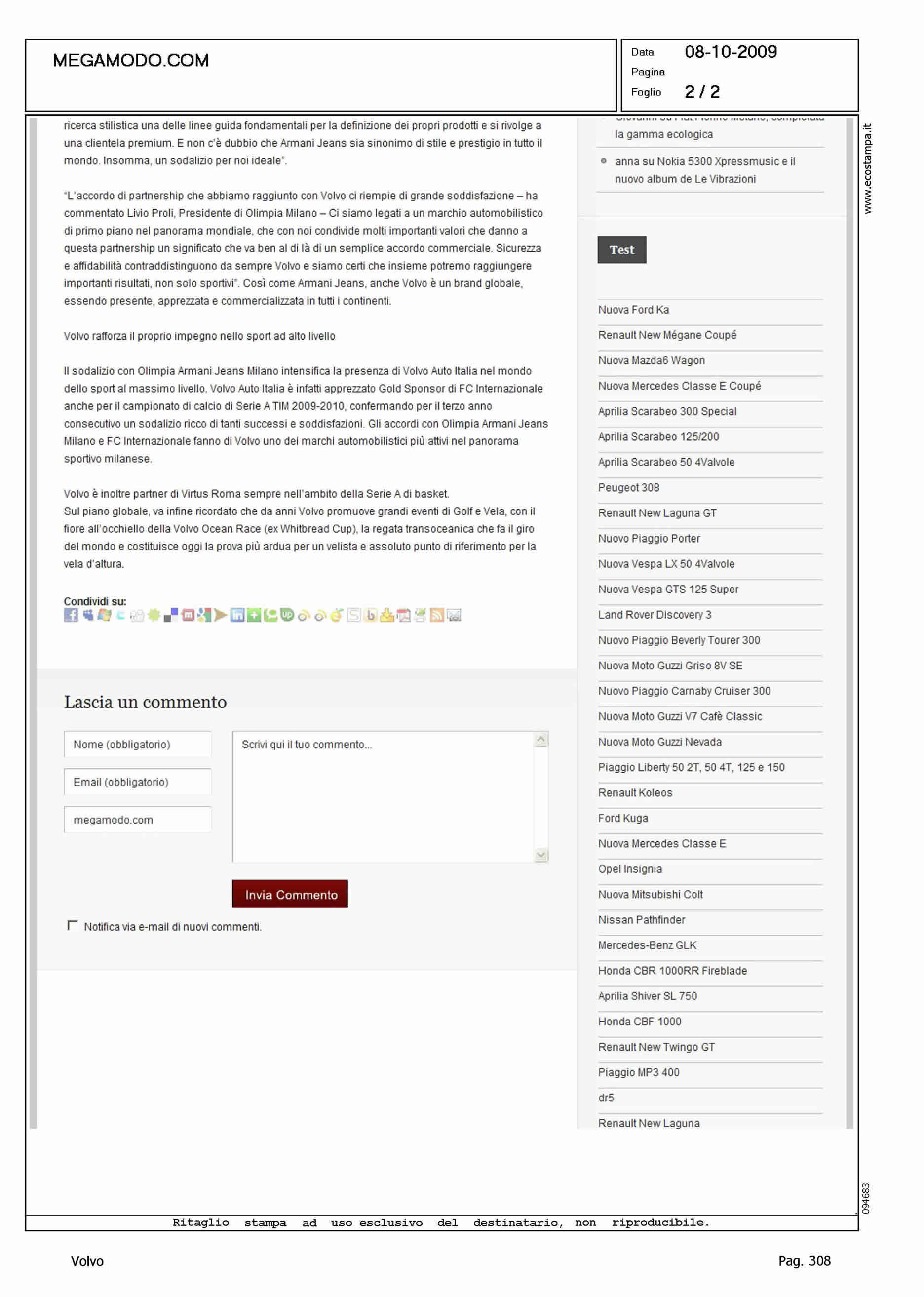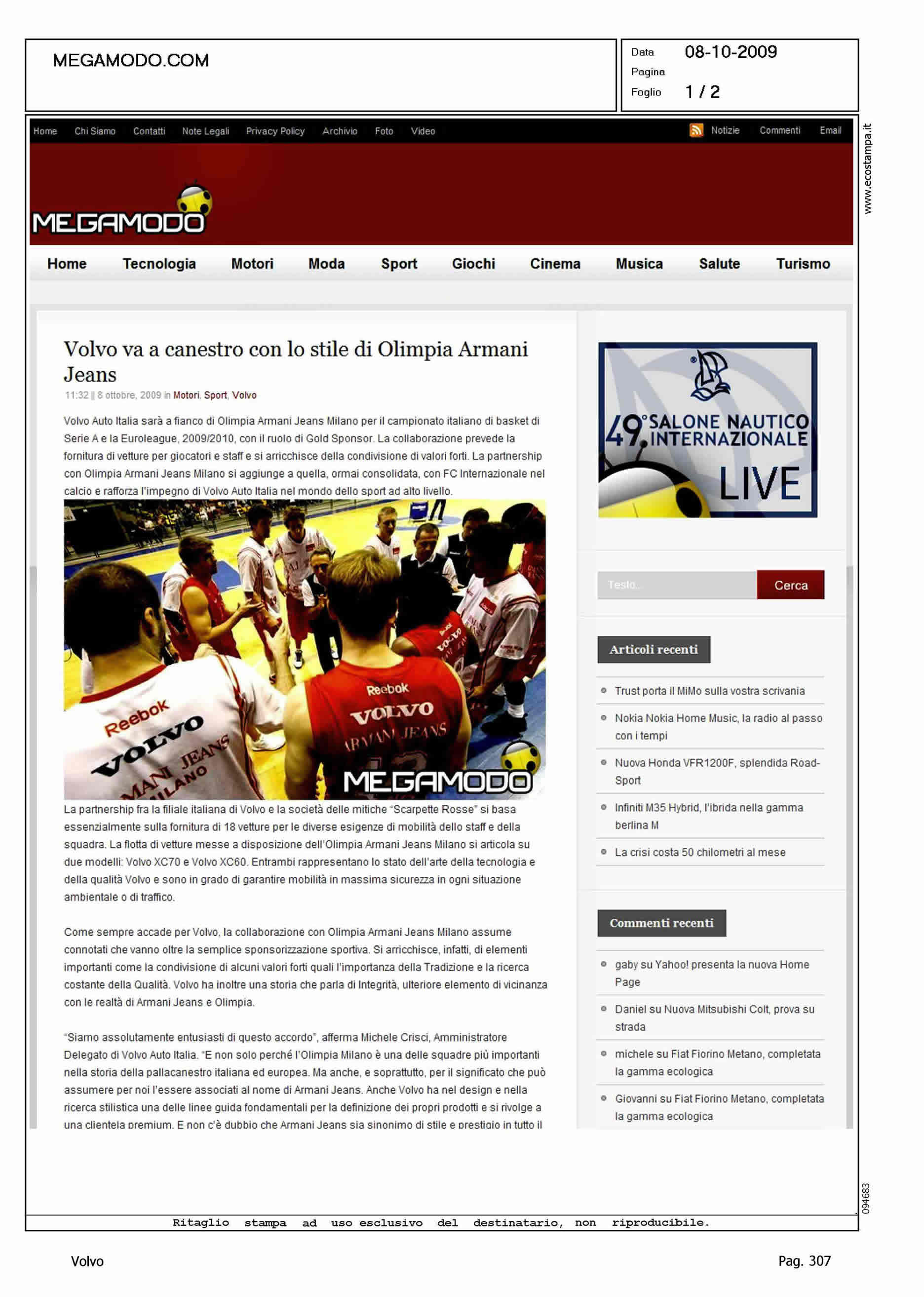 Author: Line: Corporate Model: Corporate Subject: - Title: VOLVO VA A CANESTRO CON LO STILE DI OLIMPIA ARMANI JEANSHighlight: SPONSORIZZAZIONE