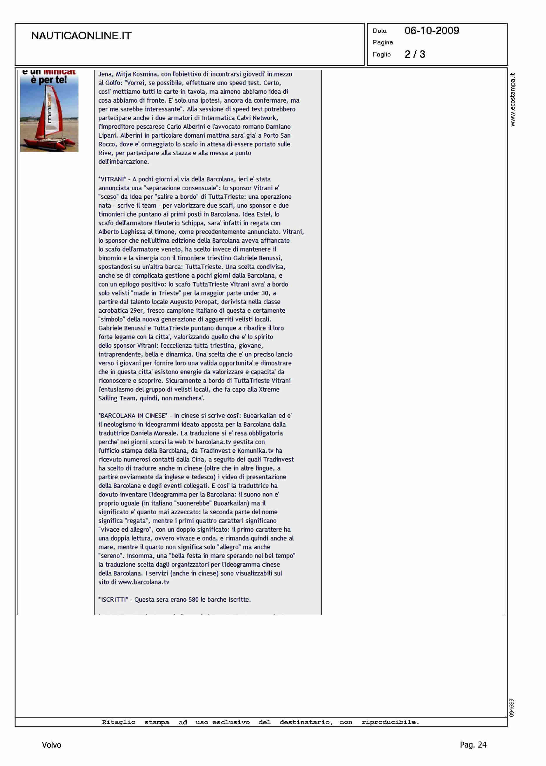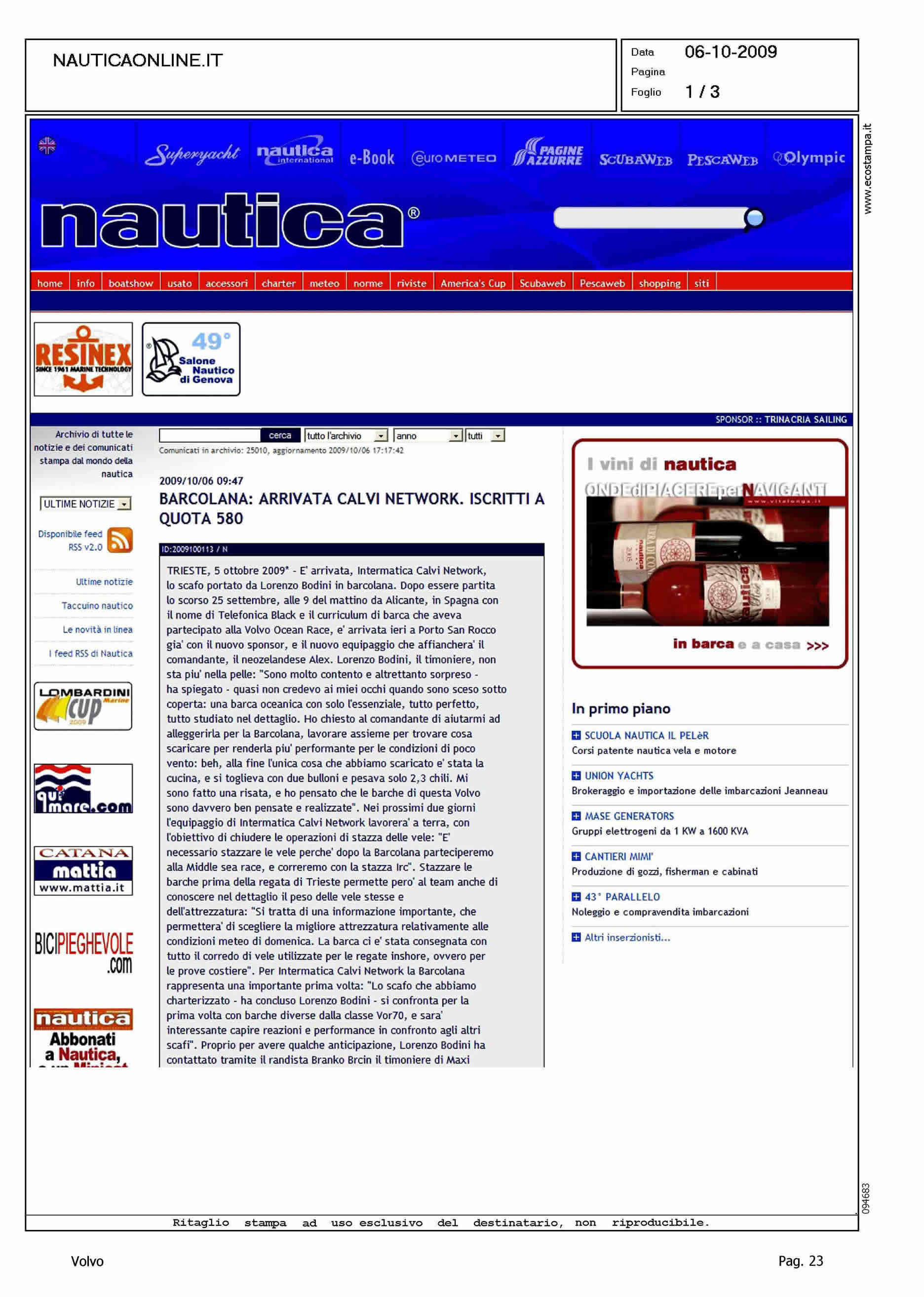 Author: Line: Corporate Model: Corporate Subject: Volvo Ocean Race Title: BARCOLANA: ARRIVATA CALVI NETWORK, ISCRITTI A QUOTA 580Highlight: TELEFONICA BLACK