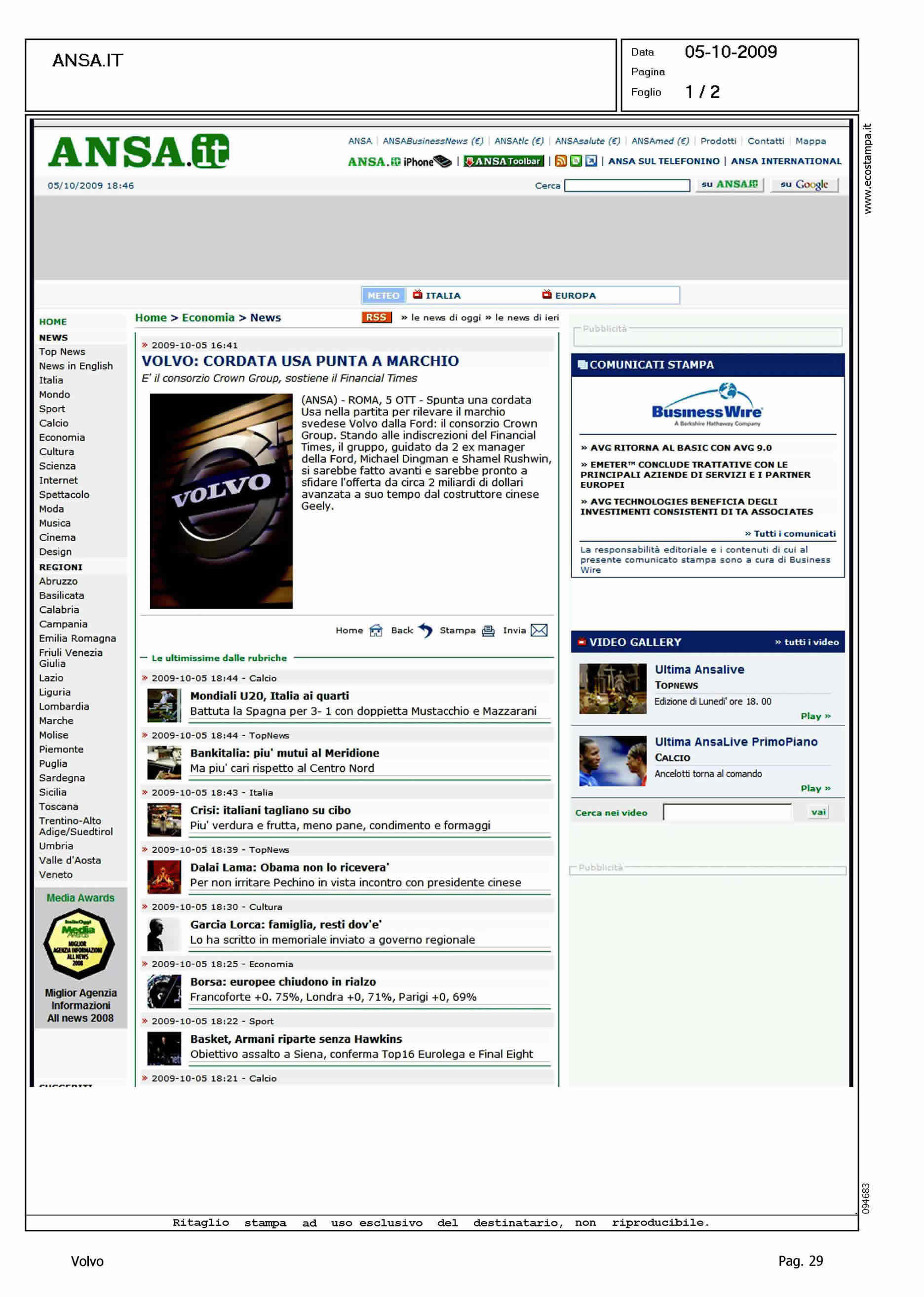 Author: Line: Corporate Model: Corporate Subject: - Title: VOLVO: CORDATA USA PUNTA A MARCHIOHighlight: CROWN CONSORTIUM