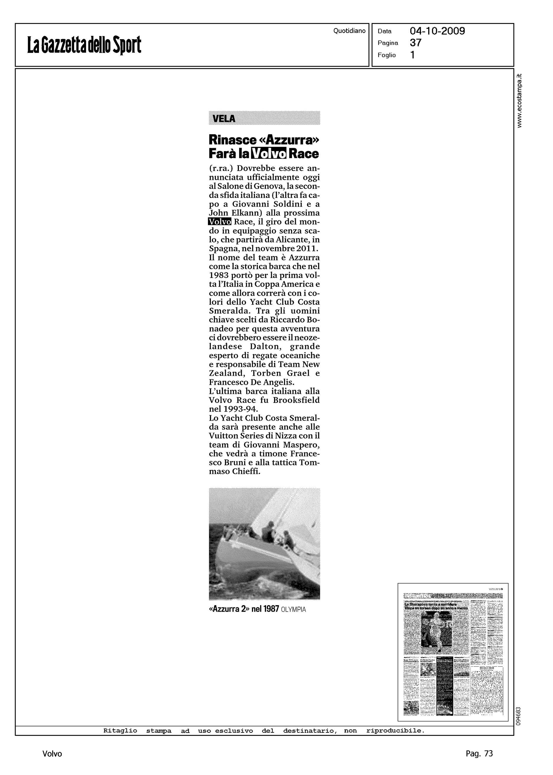 Author: Line: Corporate Model: Corporate Subject: Volvo Ocean Race Title: RINASCE "AZZURRA" - FARA' LA VOLVO OCEAN RACEHighlight: AZZURRA