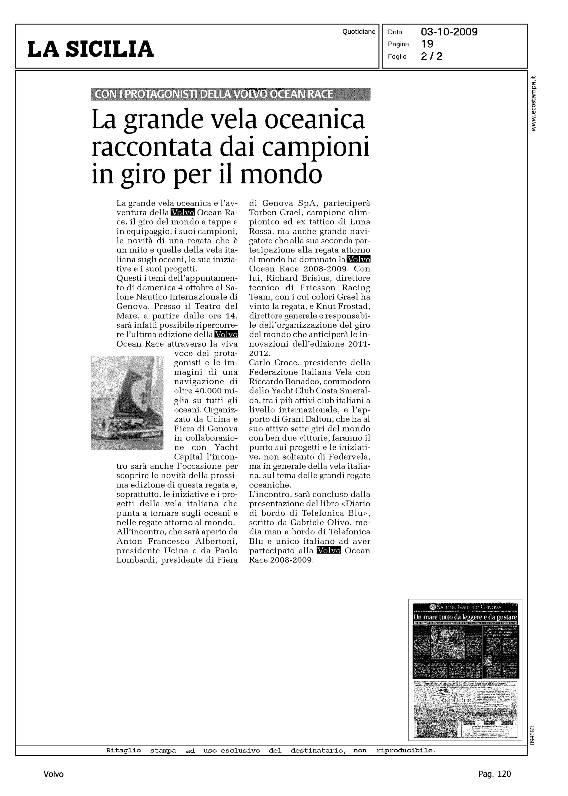 Author: Line: Corporate Model: Corporate Subject: Volvo Ocean Race Title: LA GRANDE VELA OCEANICA RACCONTATA DAI CAMPIONI IN GIRO PER IL MONDOHighlight: INCONTRI VOR