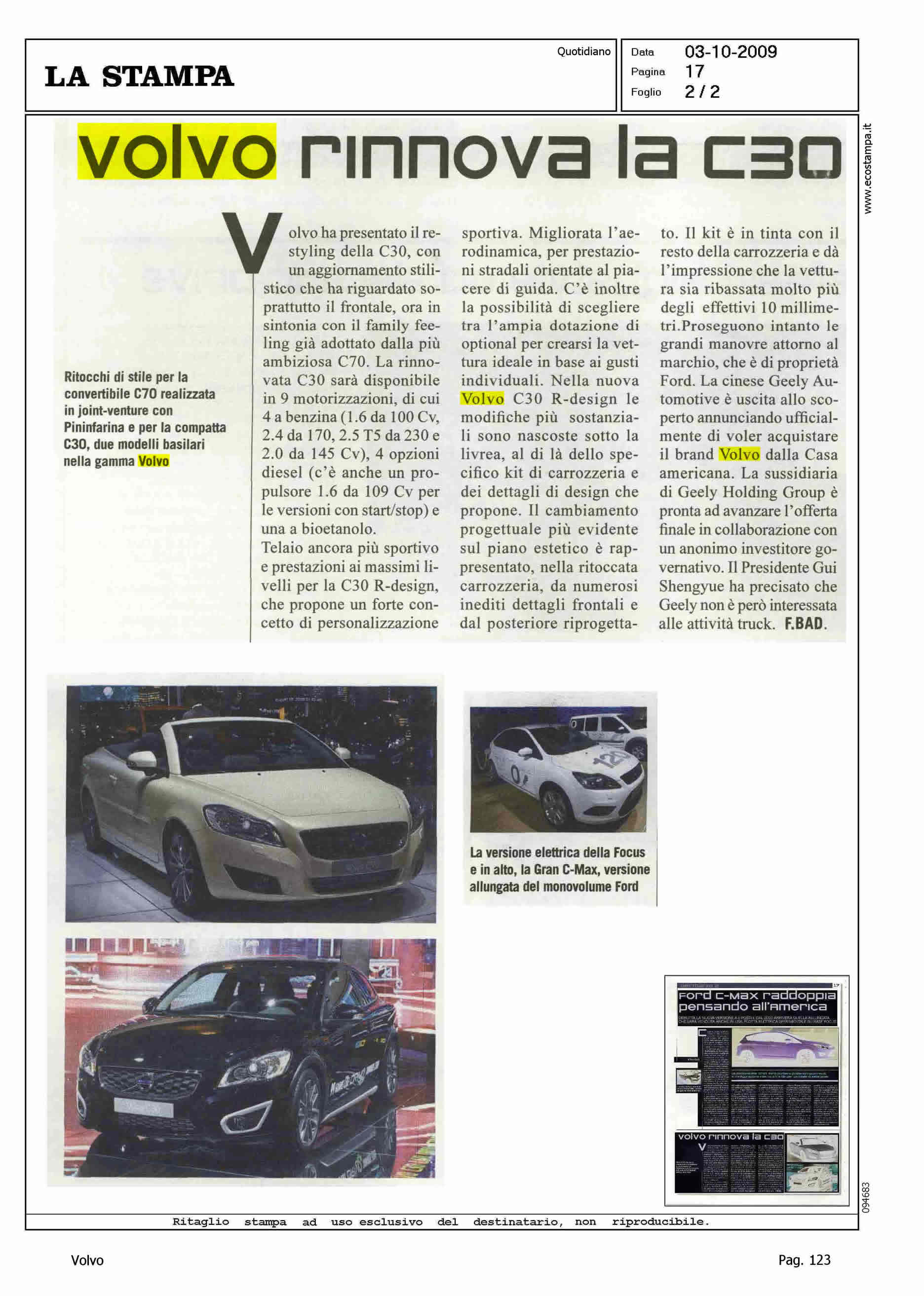 Author: Line: Corporate Model: Volvo C30 Subject: - Title: VOLVO RINNOVA LA C30Highlight: MOTORI - ALLESTIMENTI - GEELY
