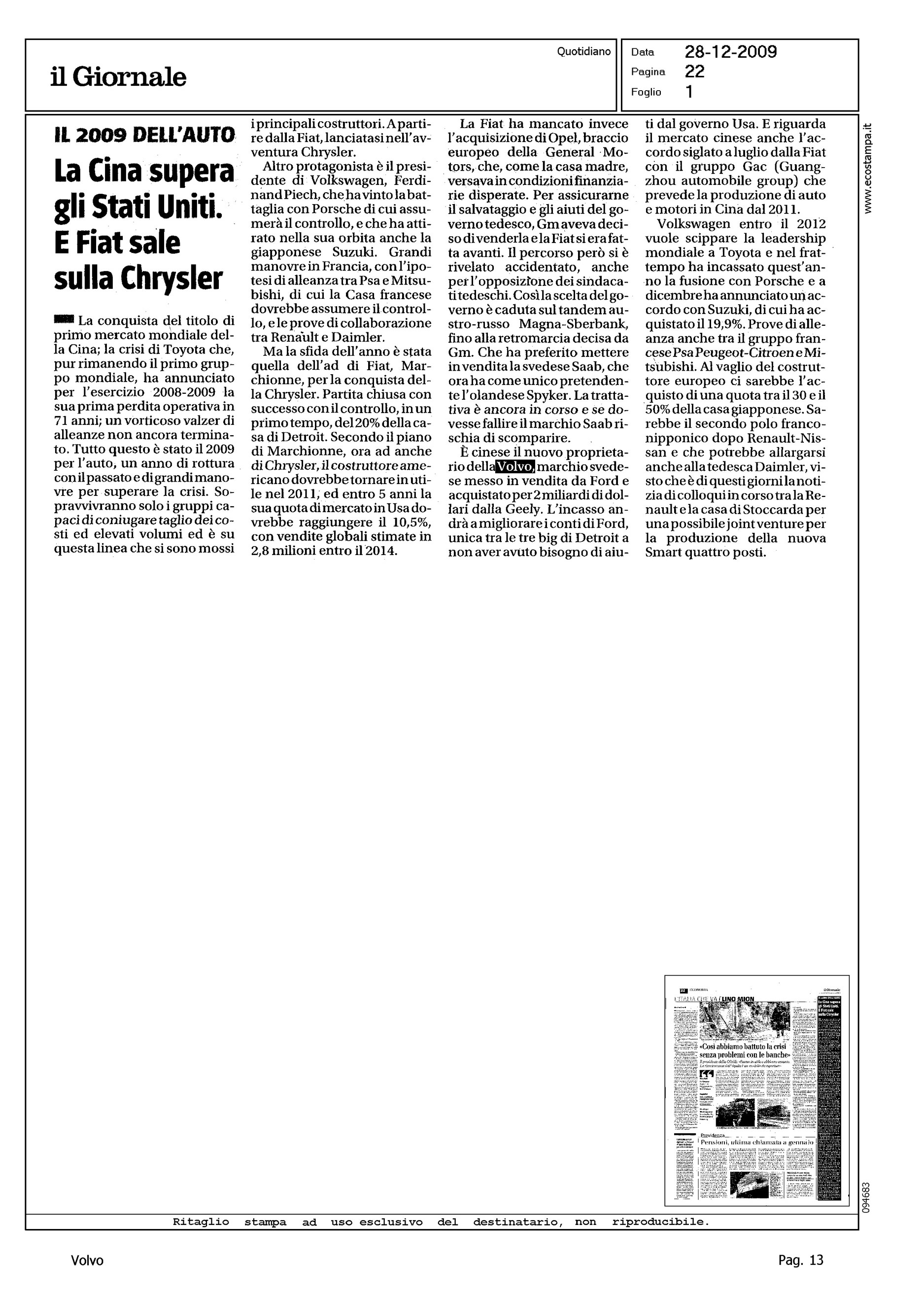 Author: Line: Corporate Model: Corporate Subject: - Title: LA CINA SUPERA GLI STATI UNITI.Highlight: VENDITA VOLVO ALLA GEELY