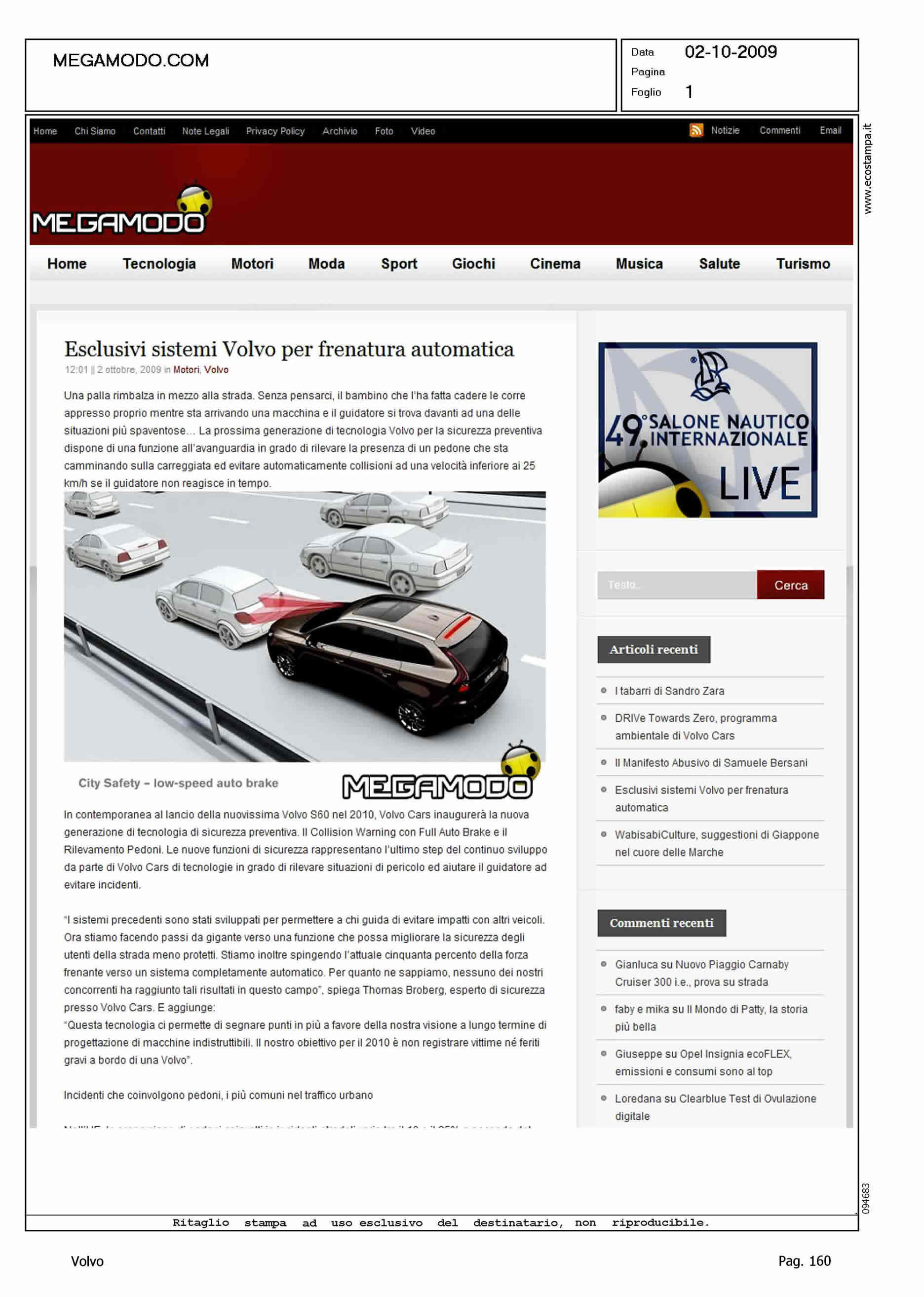 Author: Line: Corporate Model: Corporate Subject: - Title: ESCLUSIVI SISTEMI VOLVO PER FRENATURA AUTOMATICAHighlight: SISTEMI INTEGRATI DI SICUREZZA