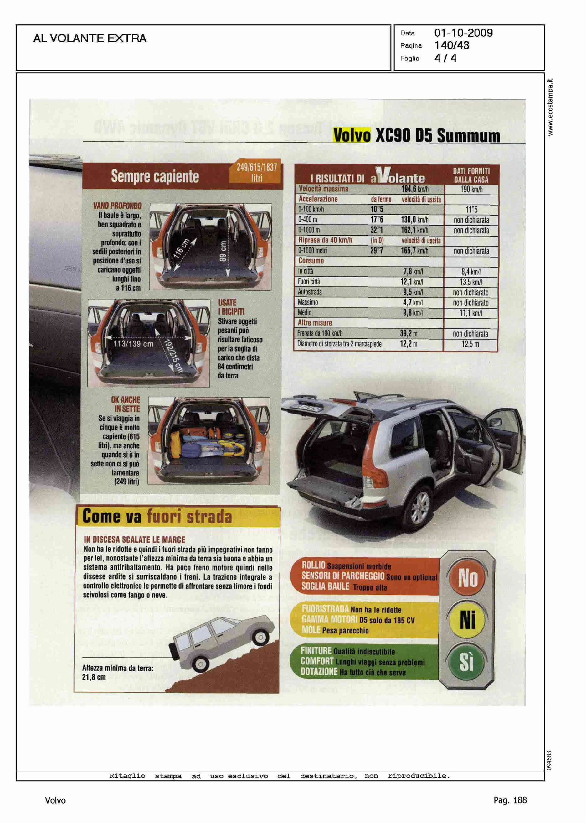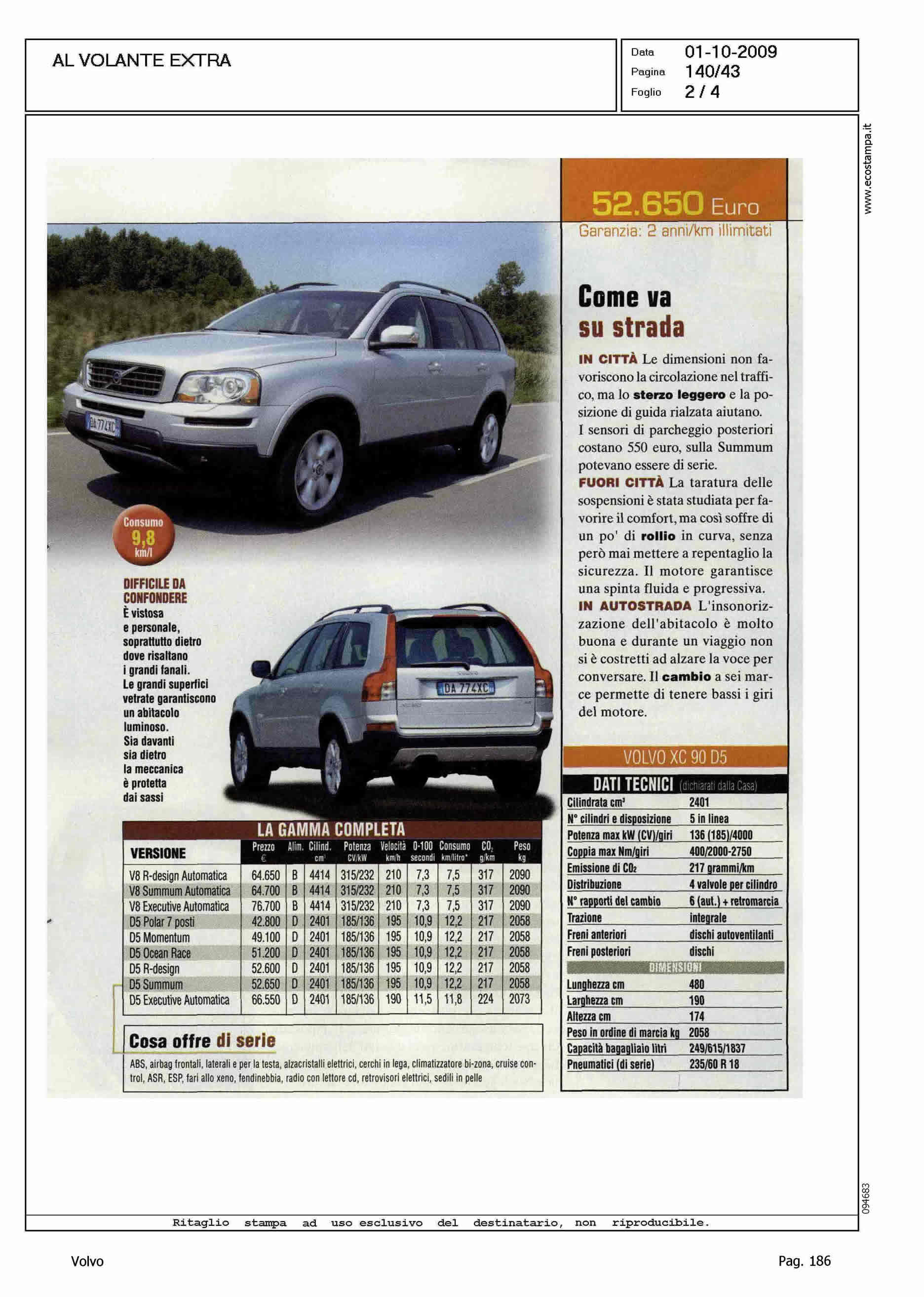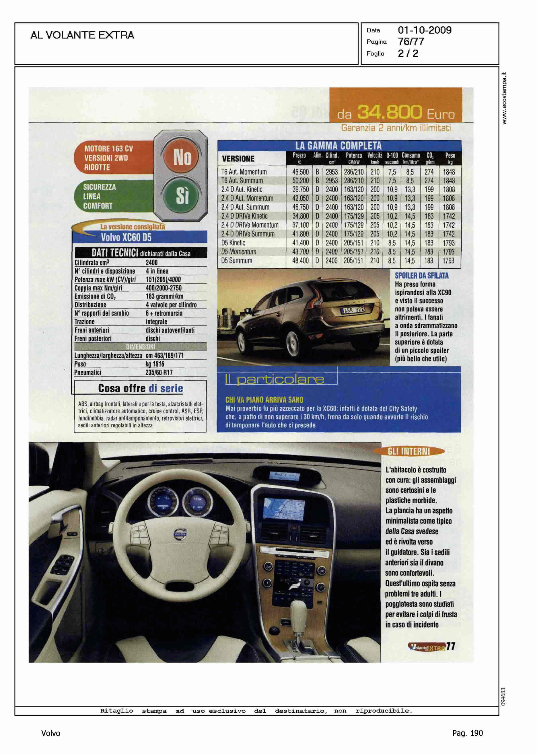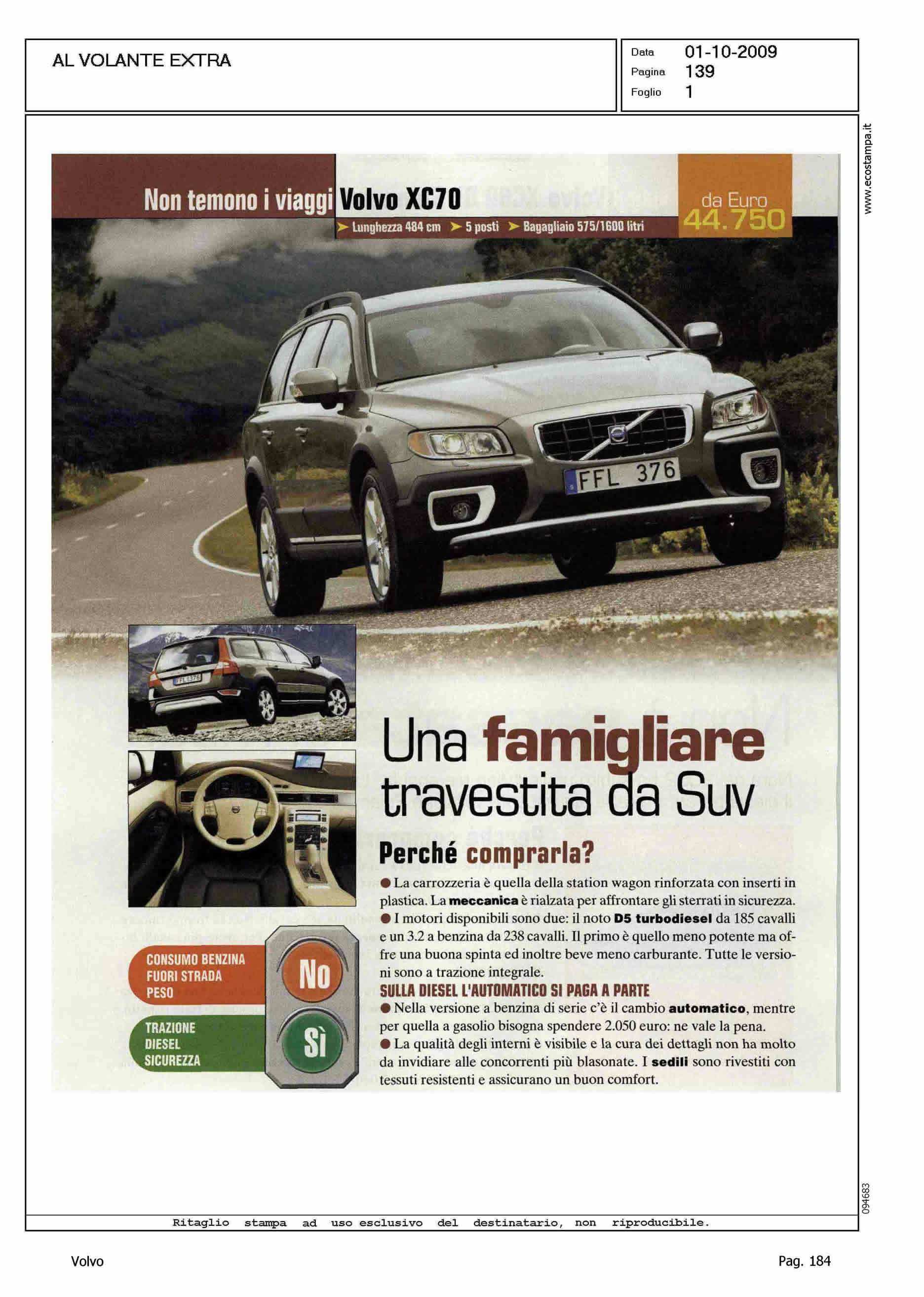 Highlight: CARATTERISTICHE TECNICHE - PRESTAZIONI - PREZZI - ALLESTIMENTI - GIUDIZI DELLA REDAZIONE - GAMMA XC: XC70, XC90, XC60