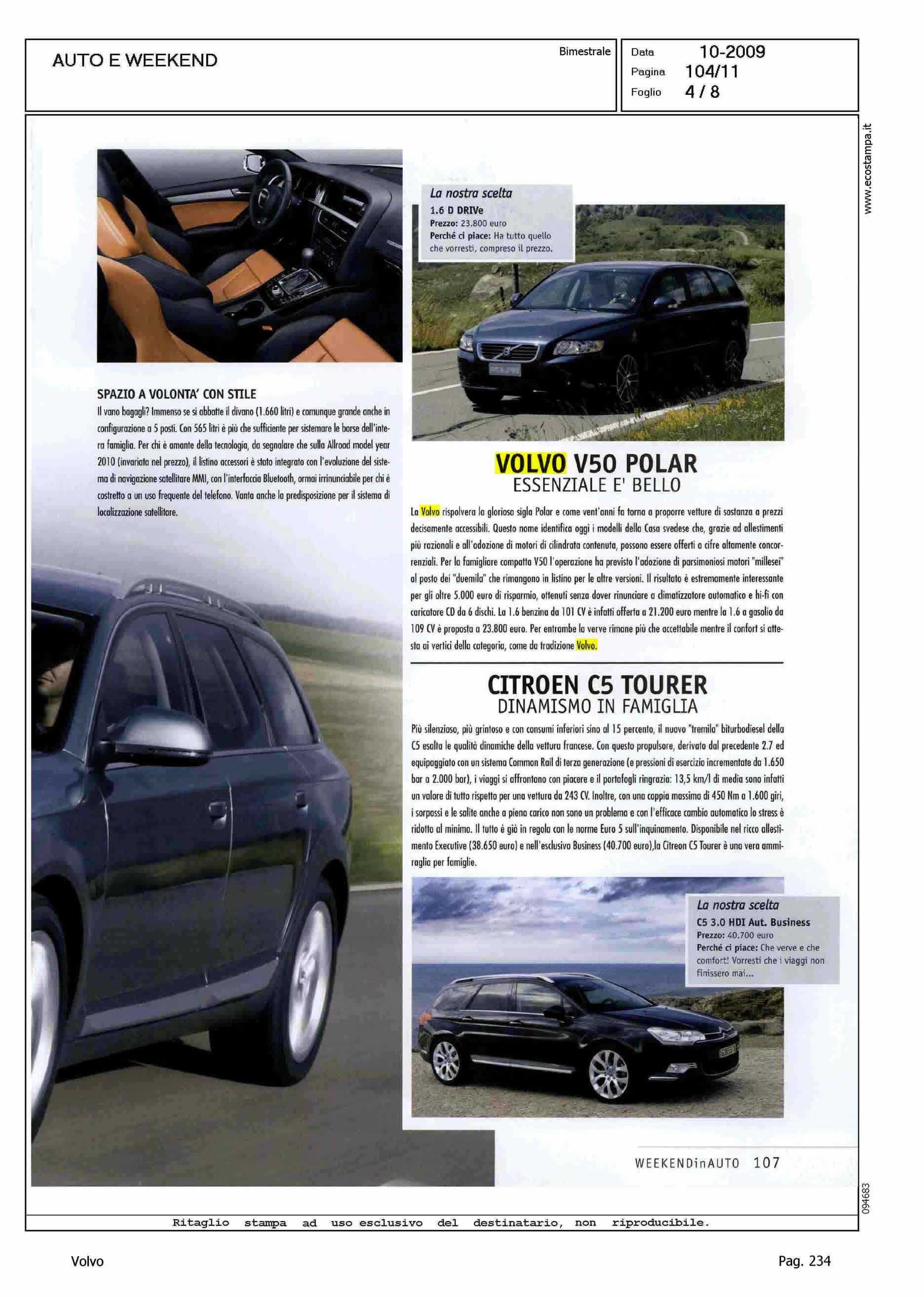 Author: Line: Corporate Model: Volvo S40 - V50 Subject: - Title: VOLVO V50 POLAR - ESSENZIALE E' BELLOHighlight: SHOWROOM