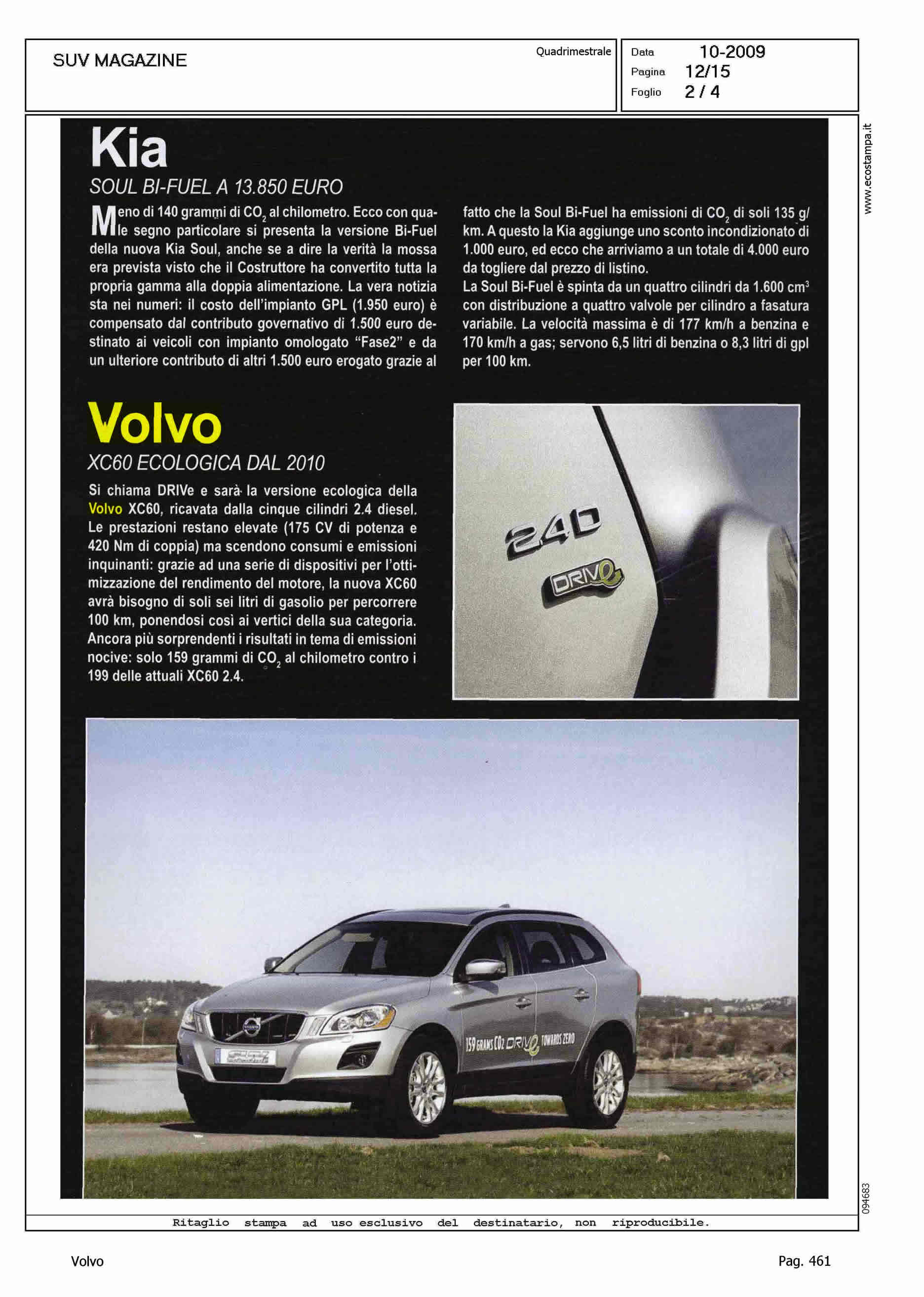 Author: Line: XC60 Model: Subject: Line (Range) Drive Title: VOLVO - XC60 ECOLOGICA DAL 2010Highlight: ANTICIPAZIONE