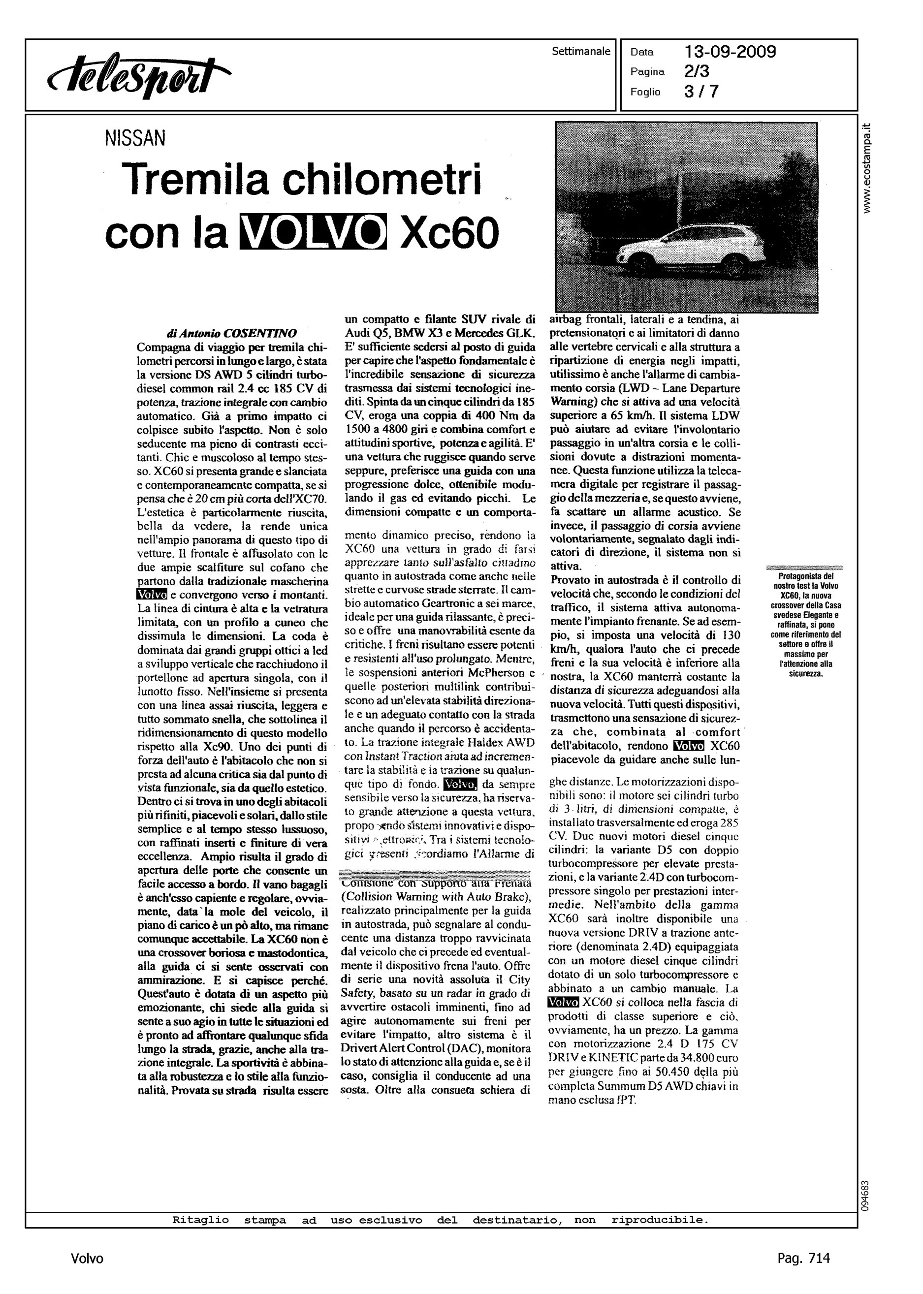 Author: COSENTINO, ANTONIOLine: XC60 Model: Subject: - Title: TREMILA CHILOMETRI CON LA VOLVO XC60Highlight: TREMILA KM AL VOLANTE